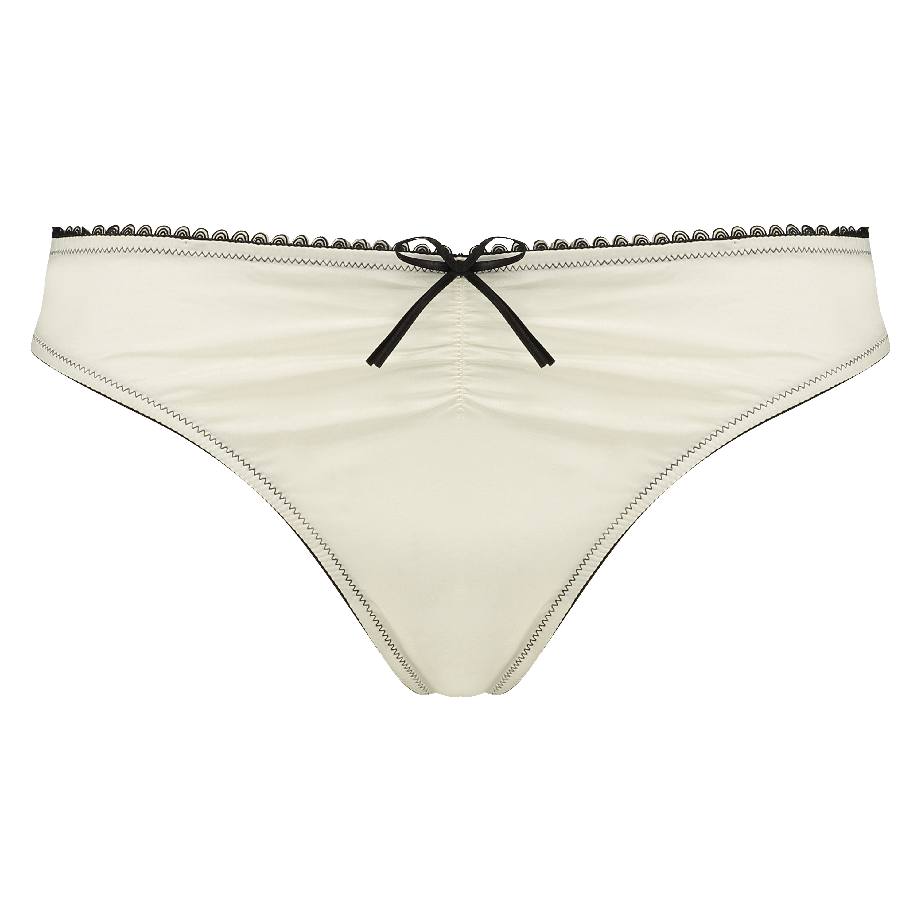 Consigue un aspecto estiloso con este tanga hecho de un material brillante con pliegues en la parte delantera. Un dulce lazo en la parte delantera le da el toque final a la prenda.