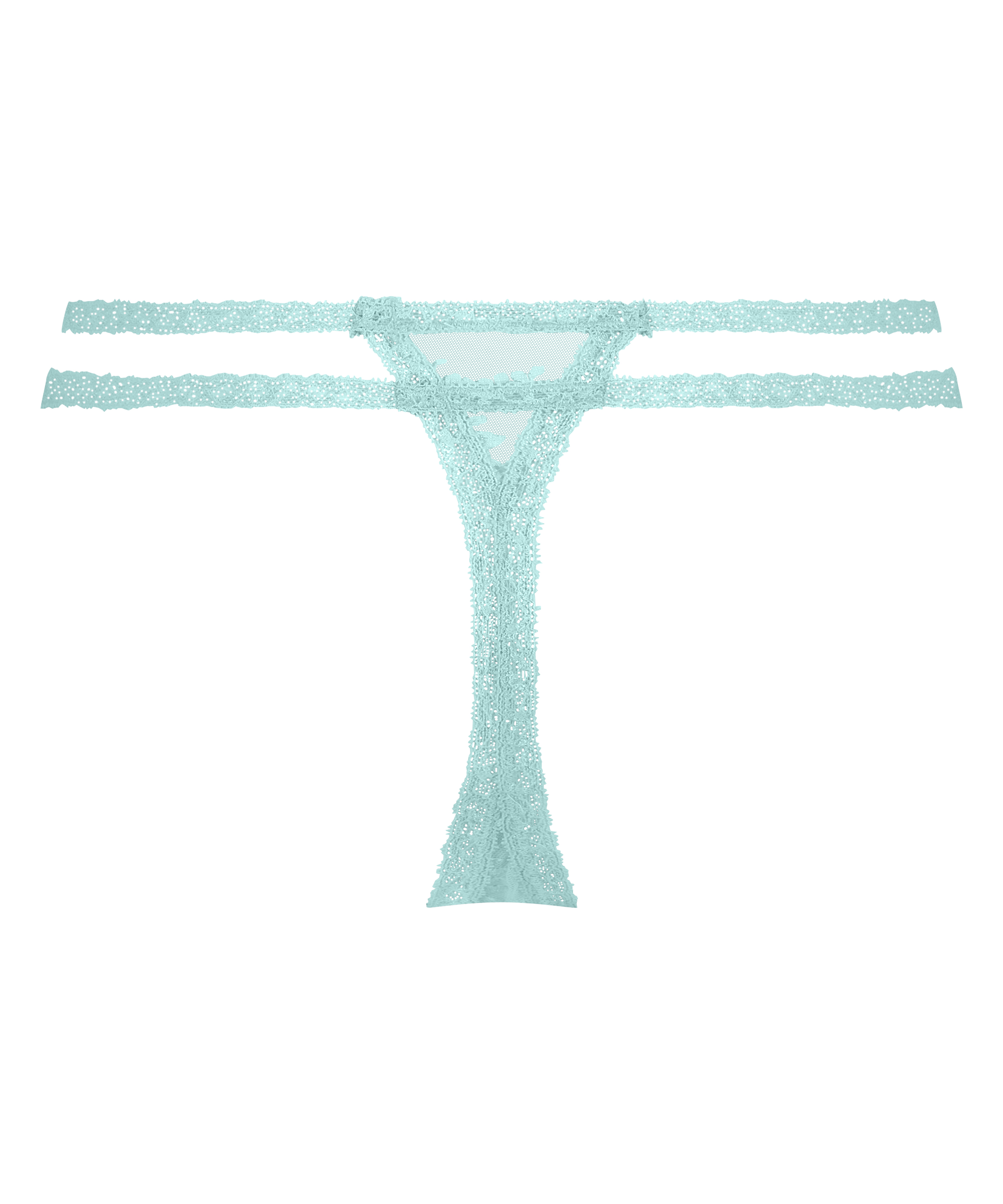 ¡Este tanga no puede faltar entre tus prendas! Tiene bonitos detalles de tiras y mucho encaje. Combínalo con tu sujetador favorito.