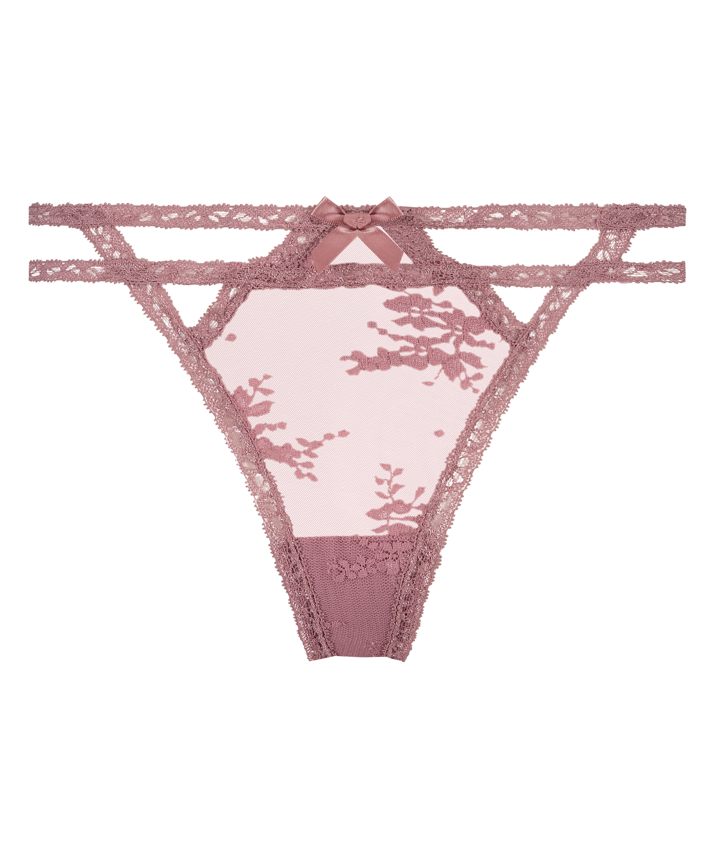 ¡Este tanga no puede faltar entre tus prendas! Tiene bonitos detalles de tiras y mucho encaje. Combínalo con tu sujetador favorito.