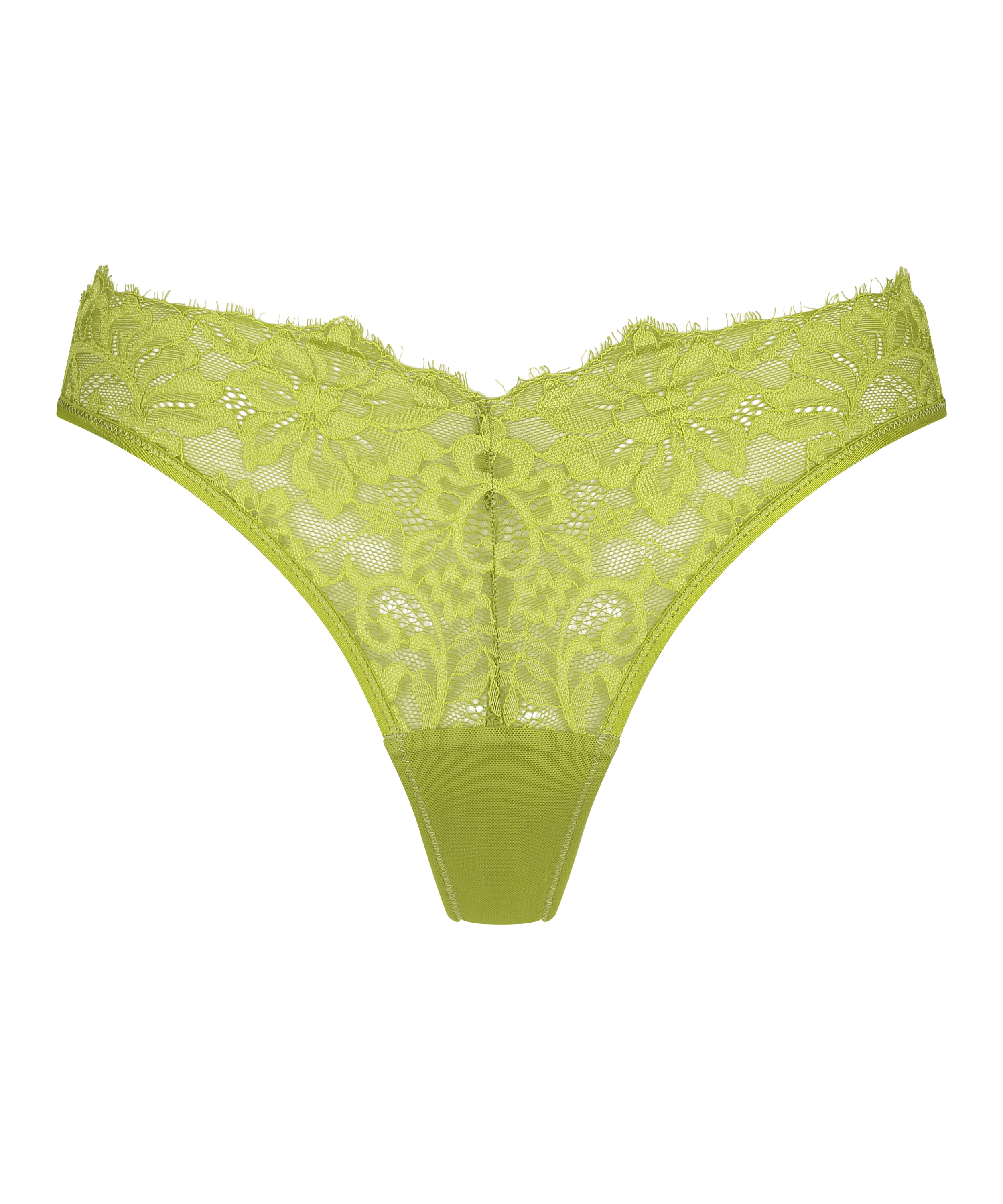 Te sentirás irresistible con este tanga divino. Tiene una parte delantera en forma de V decorada con un precioso encaje floral que abraza tus curvas, y el acabado limpio de la espalda es posible gracias al tejido de malla. ¡Completa el conjunto look con un sujetador a juego!