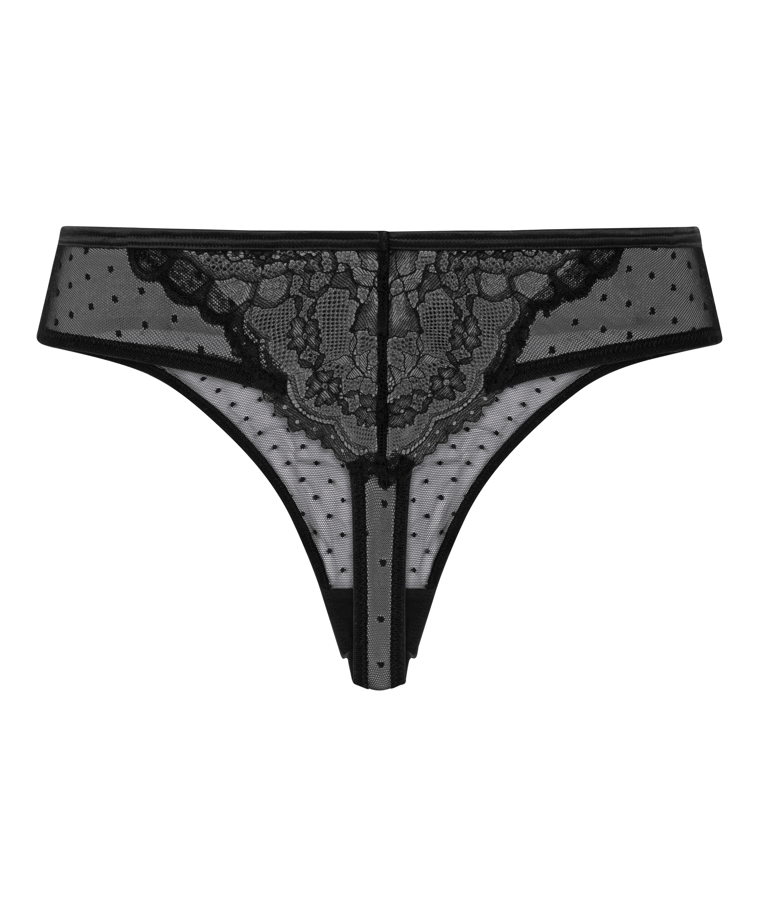 Añade un toque de elegancia a tu cajón de la lencería con nuestro tanga Juliette. Confeccionado en malla con un estampado de puntos y detalles de encaje en la parte delantera y trasera. Diseñado para combinar comodidad y estilo, combínalo con un sujetador a juego para un look completo.