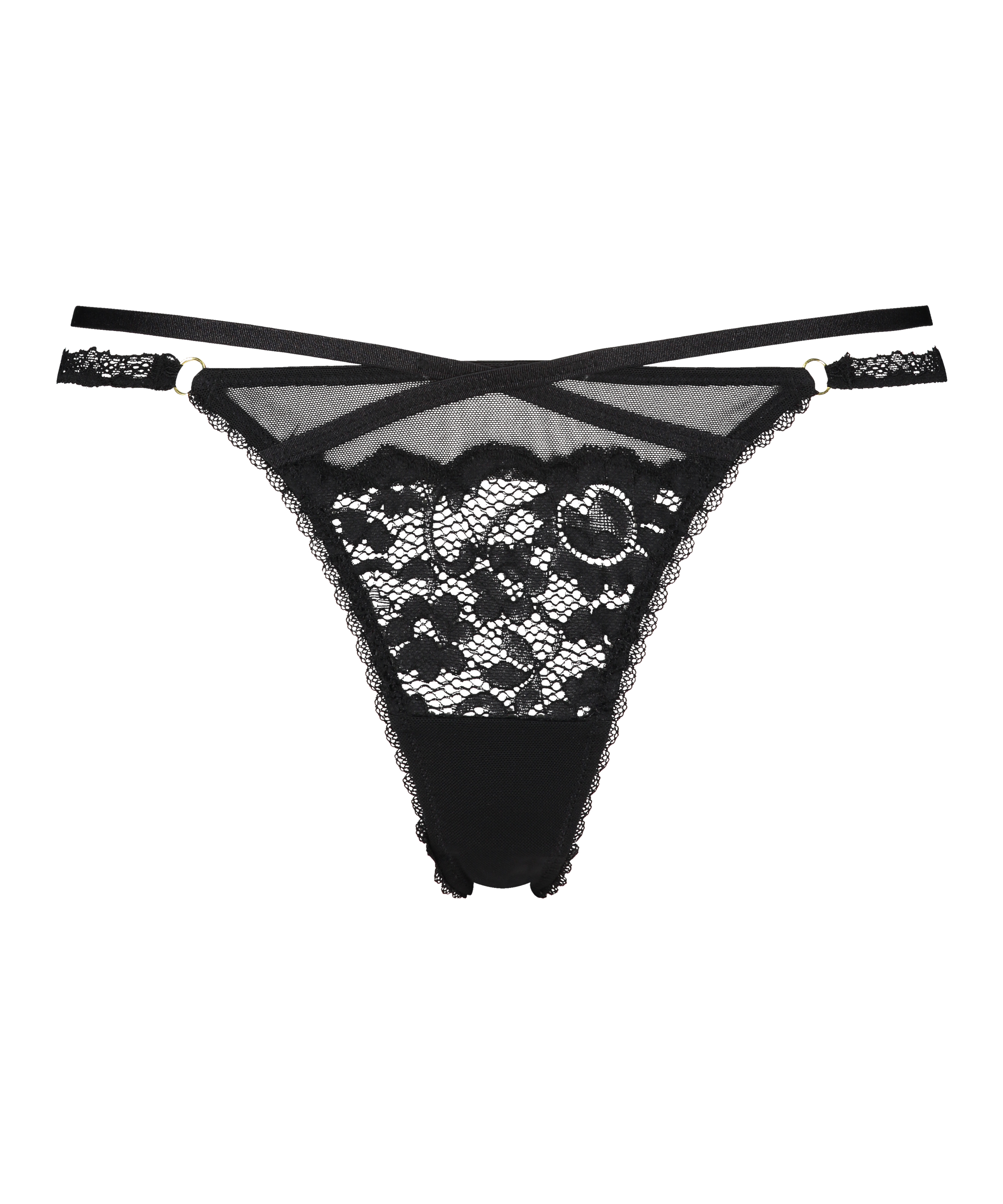 Siéntete supersexi con este tanga tan ideal. Tiene tirantes y pequeños aretes como detalle extra. Combínalo con un sujetador a juego.