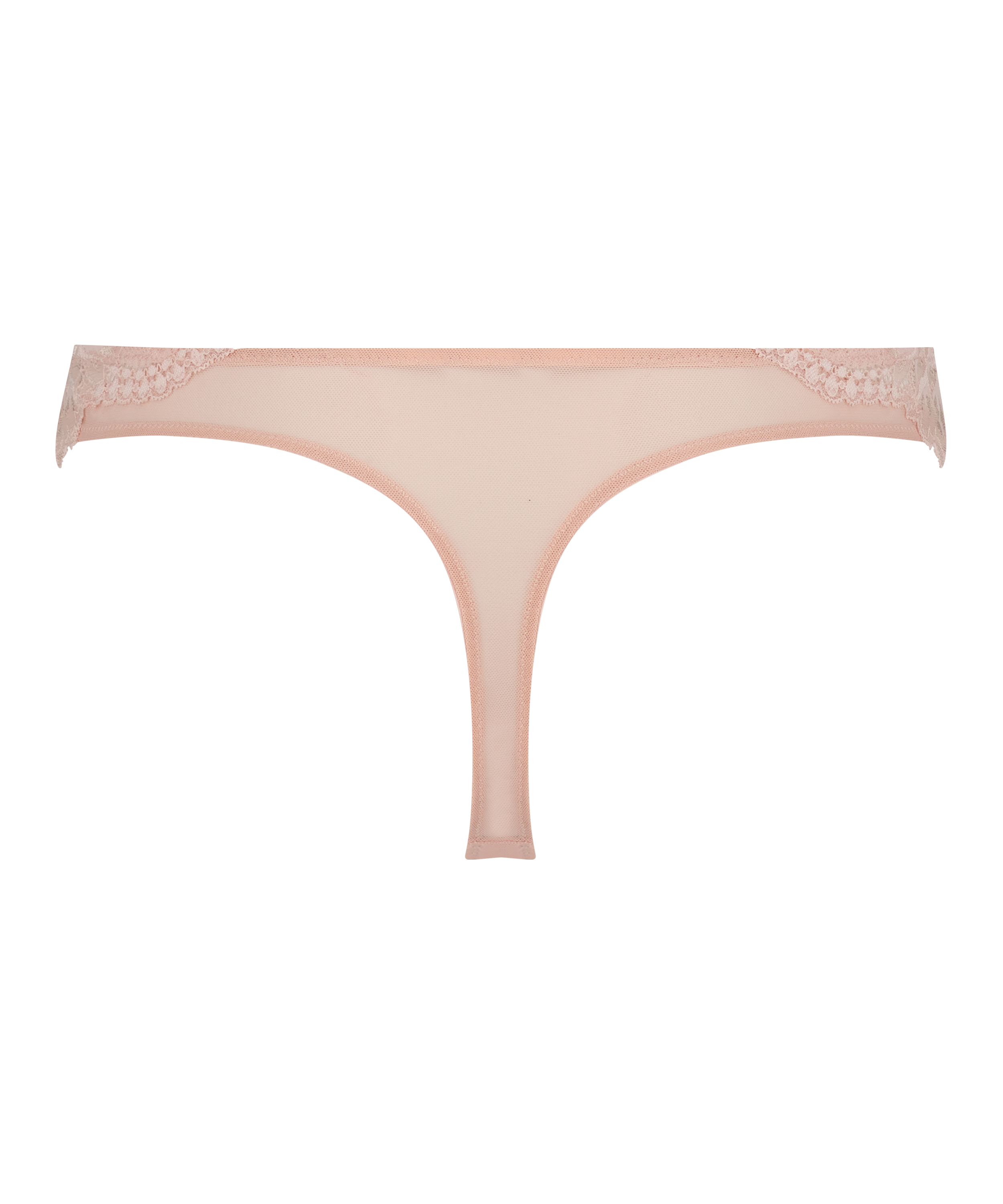 ¡Siéntete guapa en este tanga! Con mucho encaje romántico y detalles bordados en la parte delantera. En los laterales tiene una bonita franja de encaje para añadir más elementos románticos. Acabado con un lazo en la parte delantera. ¡Encuentra un sujetador a juego para completar el conjunto!