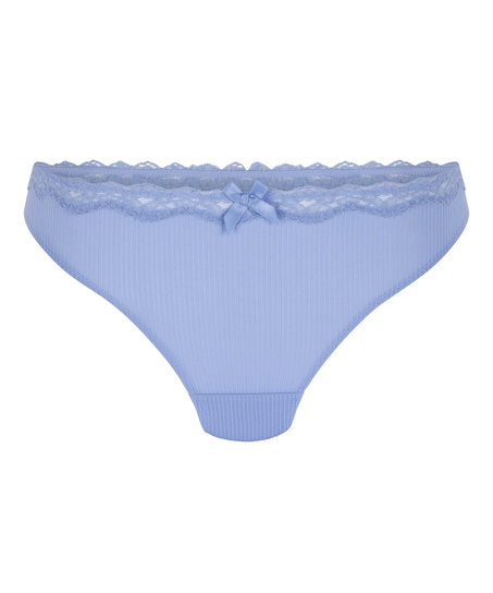 Este tanga está hecho de un tejido de punto y tiene un acabado de ribete de encaje en la parte superior. ¡El lacito en el medio le da el toque final! ¡Combínala con el sujetador a juego para completar tu conjunto!