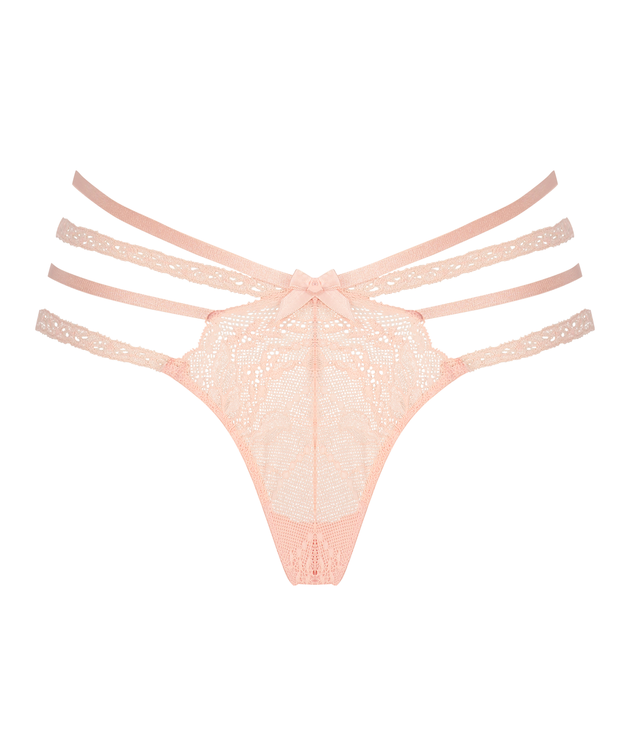 ¡Siéntete de lo más sexi con este tanga! Está hecha principalmente de encaje, tiene un bonito lazo en la parte delantera y los detalles de tiras son el toque final. Combínala con tus prendas favoritas.