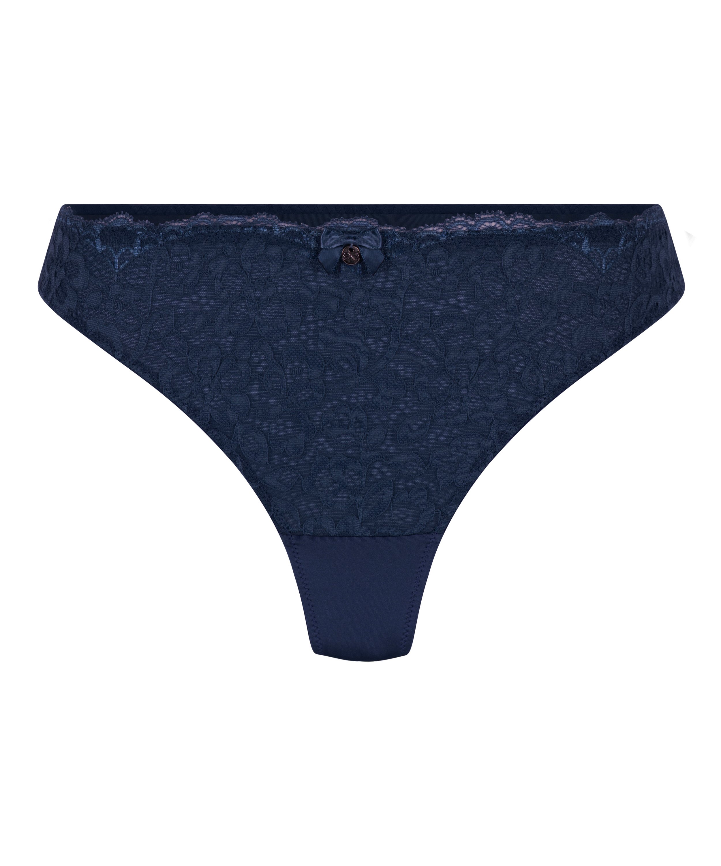 ¡Este tanga te quedará fabuloso! Tiene un acabado de encaje en un motivo floral y cuenta con un lacito en el medio. Combínalo con el sujetador a juego para completar tu conjunto.