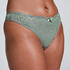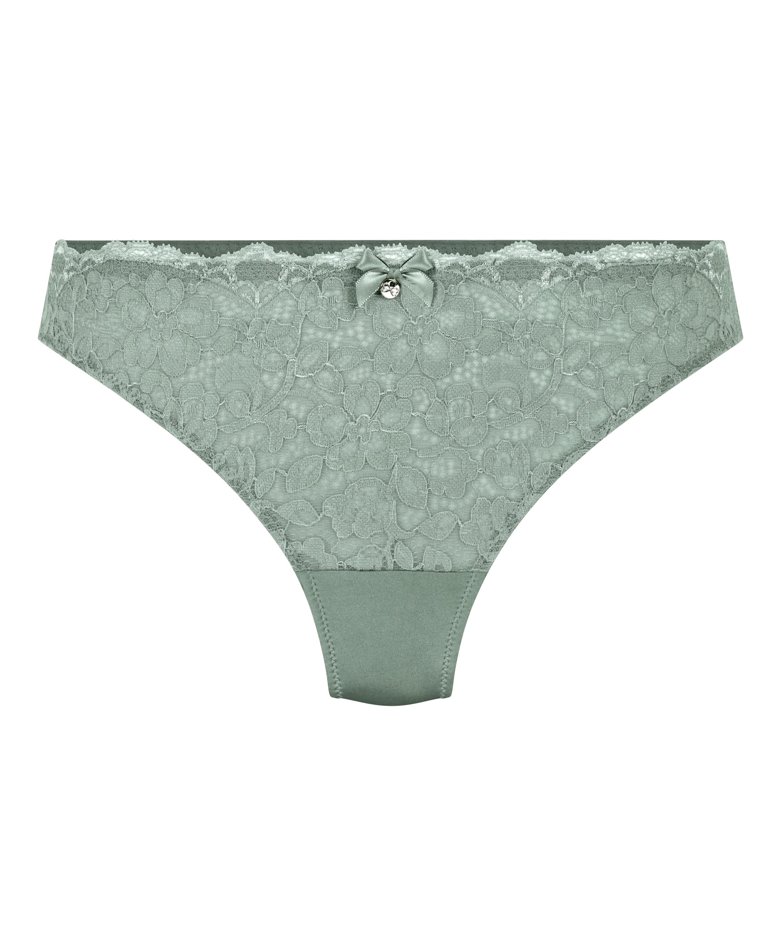 ¡Este tanga te quedará fabuloso! Tiene un acabado de encaje en un motivo floral y cuenta con un lacito en el medio. Combínalo con el sujetador a juego para completar tu conjunto.