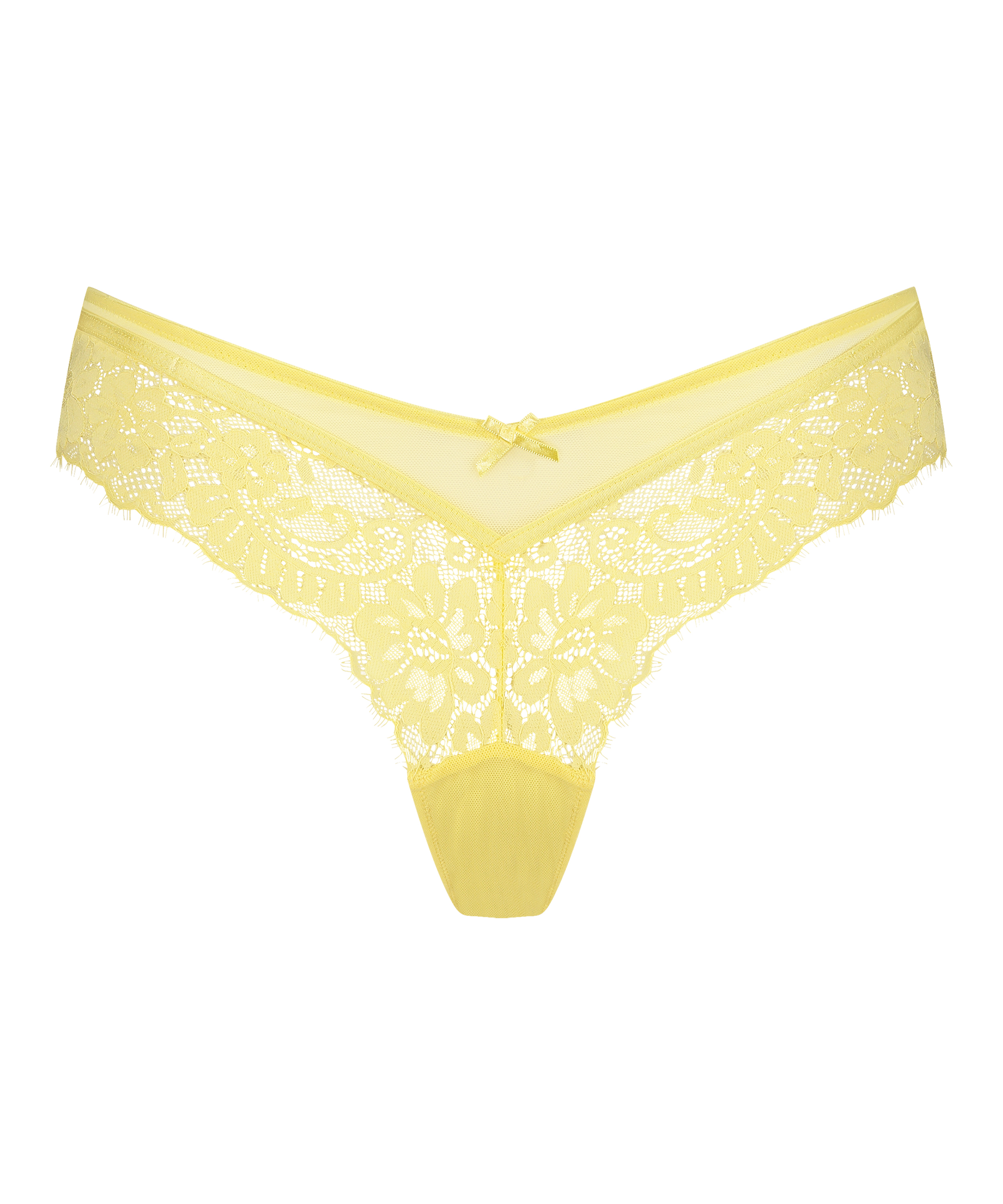 Siéntete irresistible con nuestro impresionante tanga. Confeccionada con una lujosa mezcla de encaje, malla e intrincados detalles de tiras, esta prenda irradia sensualidad en estado puro. Al combinarlo fácilmente con tu sujetador favorito completarás tu look y te sentirás segura de ti misma a cada paso.