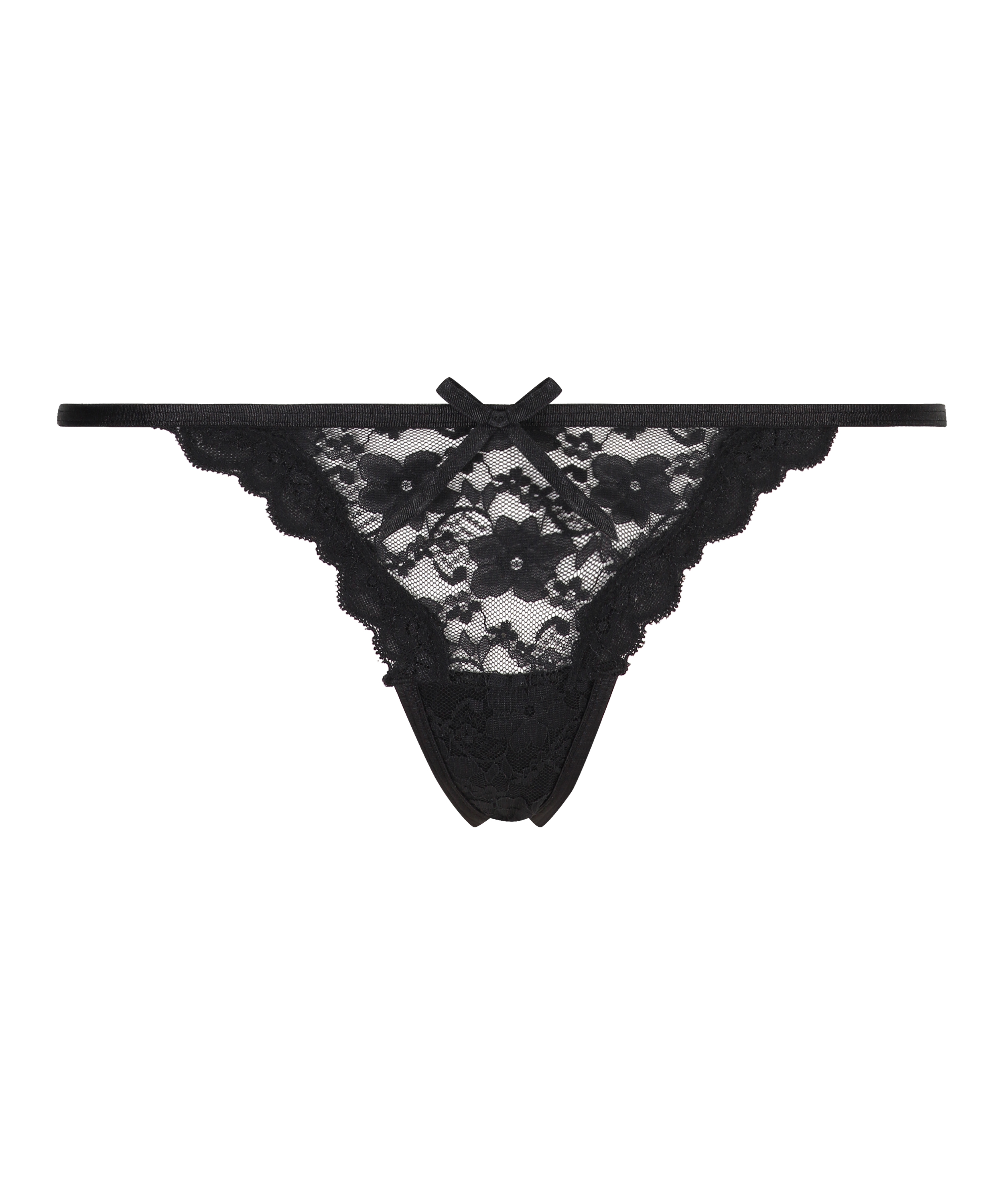 ¡Este tanga es súper sexi! ¡El tanga está hecho íntegramente de encaje y tiene un lacito de toque final!