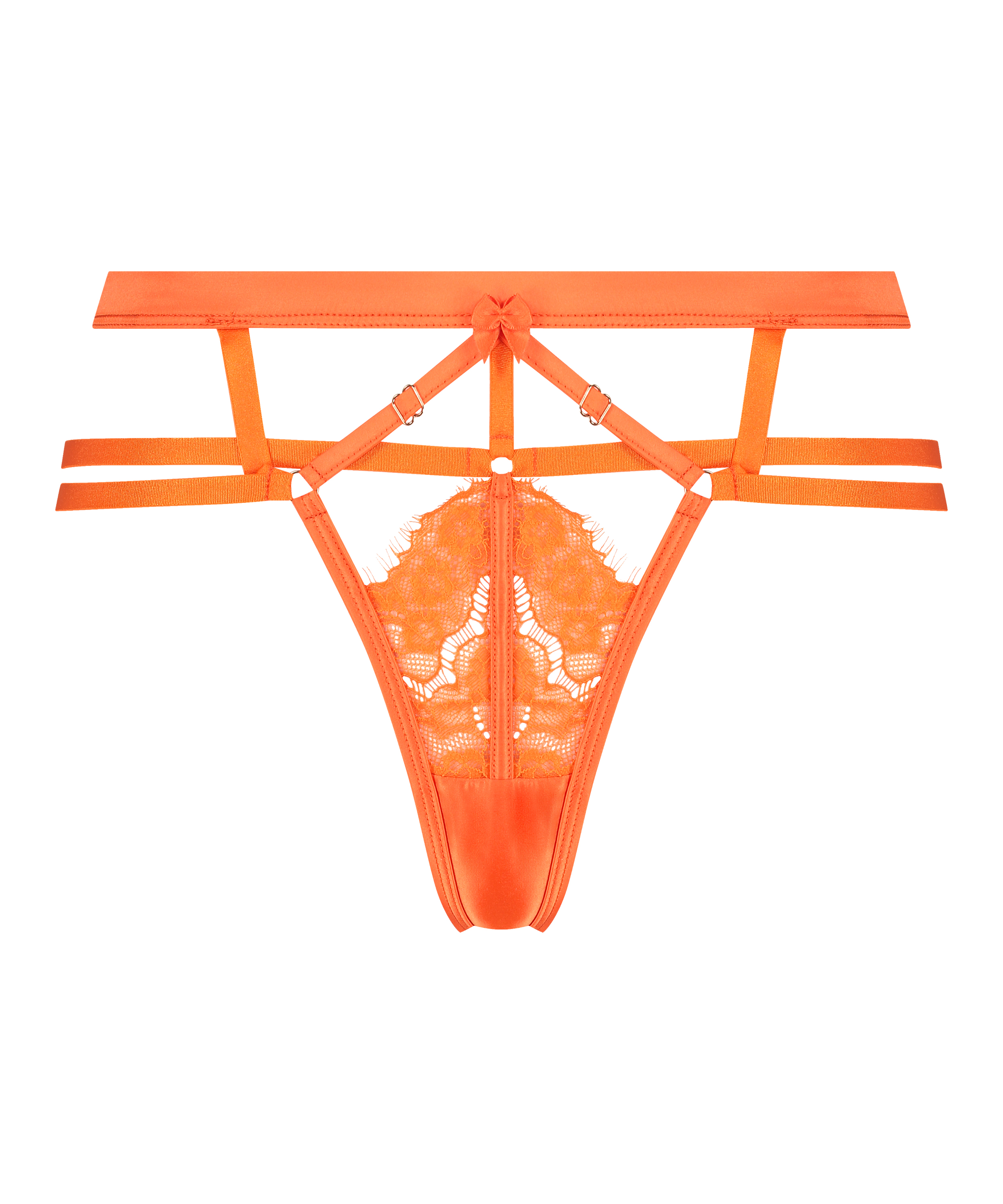 Consigue un look atrevido con este tanga. Tiene abundantes detalles de cintas, encaje y un bonito lacito en la parte delantera. Combínalas con los artículos a juego para completar tu conjunto. Forma parte de la colección Private.