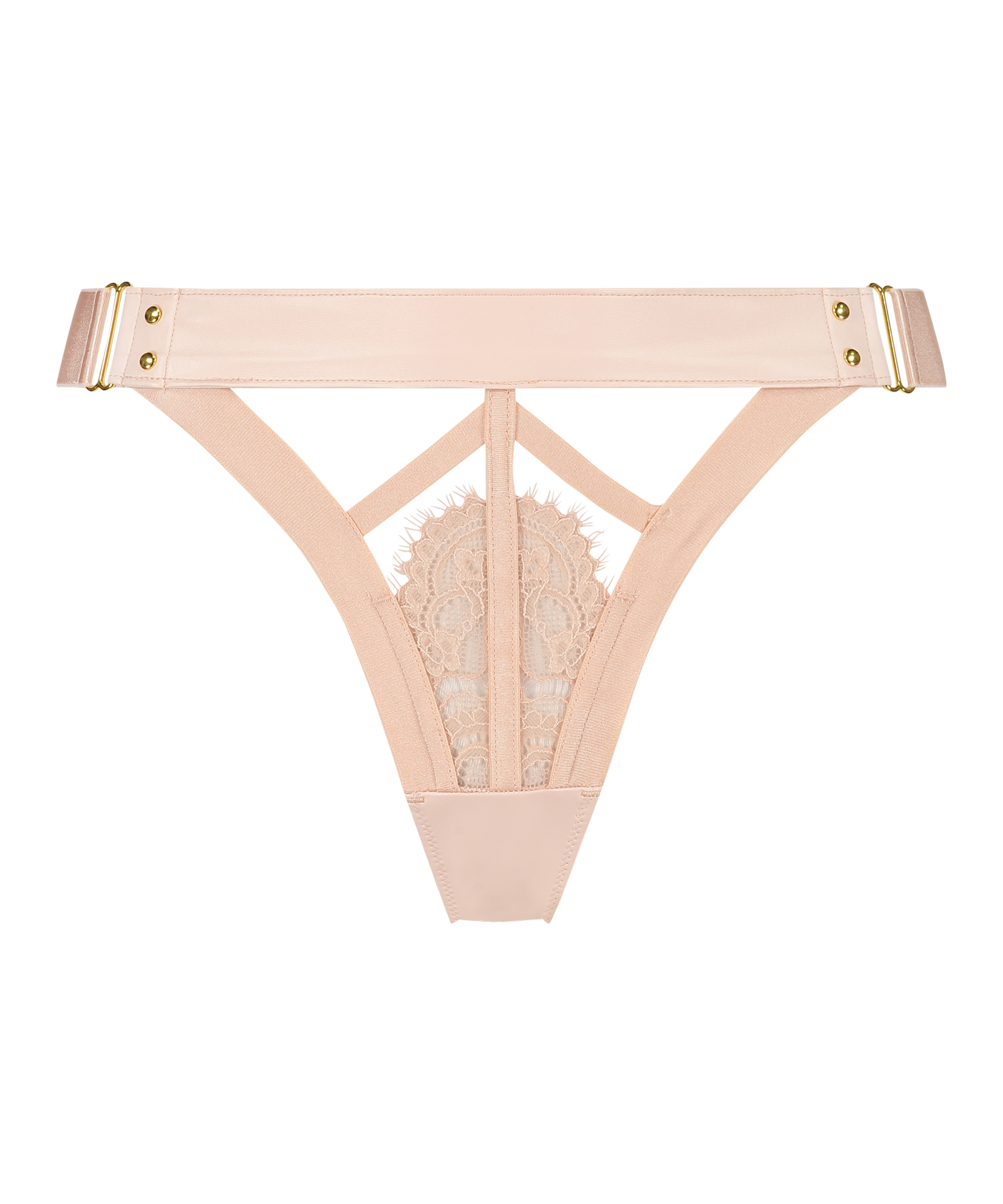 ¿Preparada para una noche de pasión? ¡Entonces este tanga debe ser tuyo! Está acabado en piel sintética y parcialmente cubierto de encaje. Tiene detalles de aberturas en la parte delantera. ¡Combina este tanga con un sujetador a juego de nuestra colección Private!