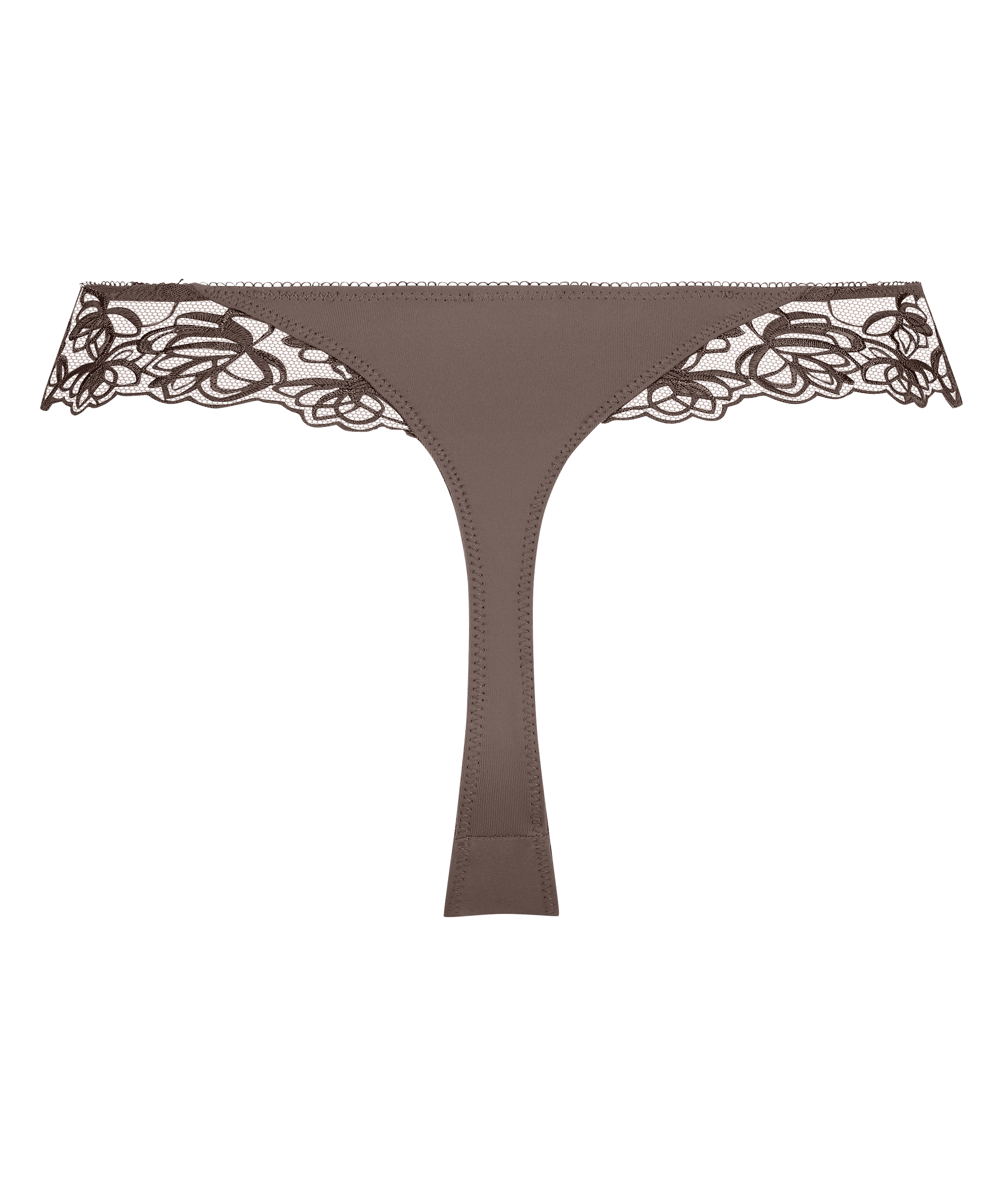 Estos tanga de estilo pantalón corto con encaje bordado son ideales para empezar el día de forma positiva. La parte delantera cuenta con acabados de tejido semitransparente.