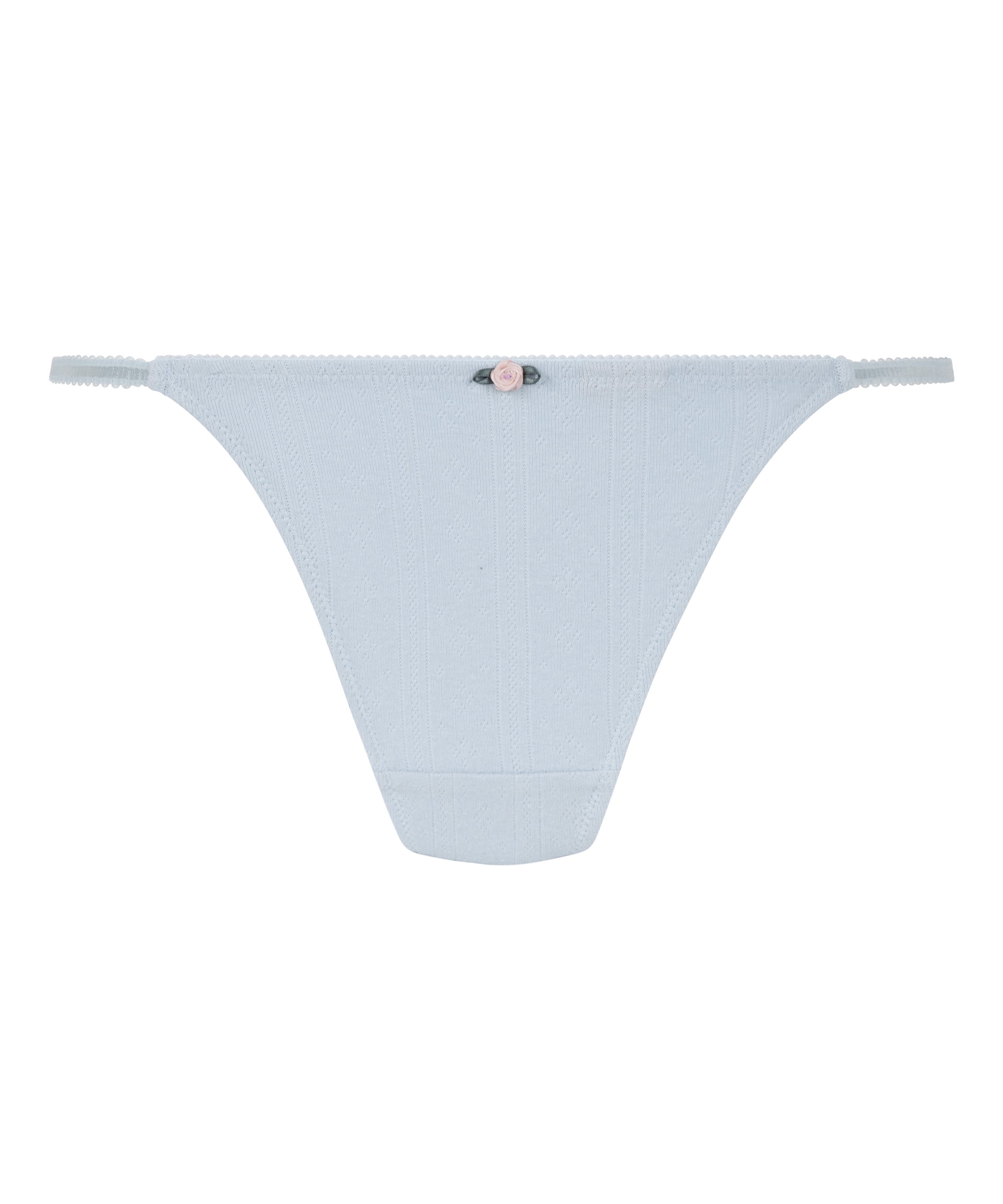 El romanticismo se aúna con la modernidad en este tanga. Confeccionado en tejido de puntoelle con acabado texturizado, combina la comodidad durante todo el día con un estilo chic sin esfuerzo. El diseño de pierna alta estiliza tu silueta, mientras que el detalle de la rosa en la parte delantera añade un dulce toque femenino.