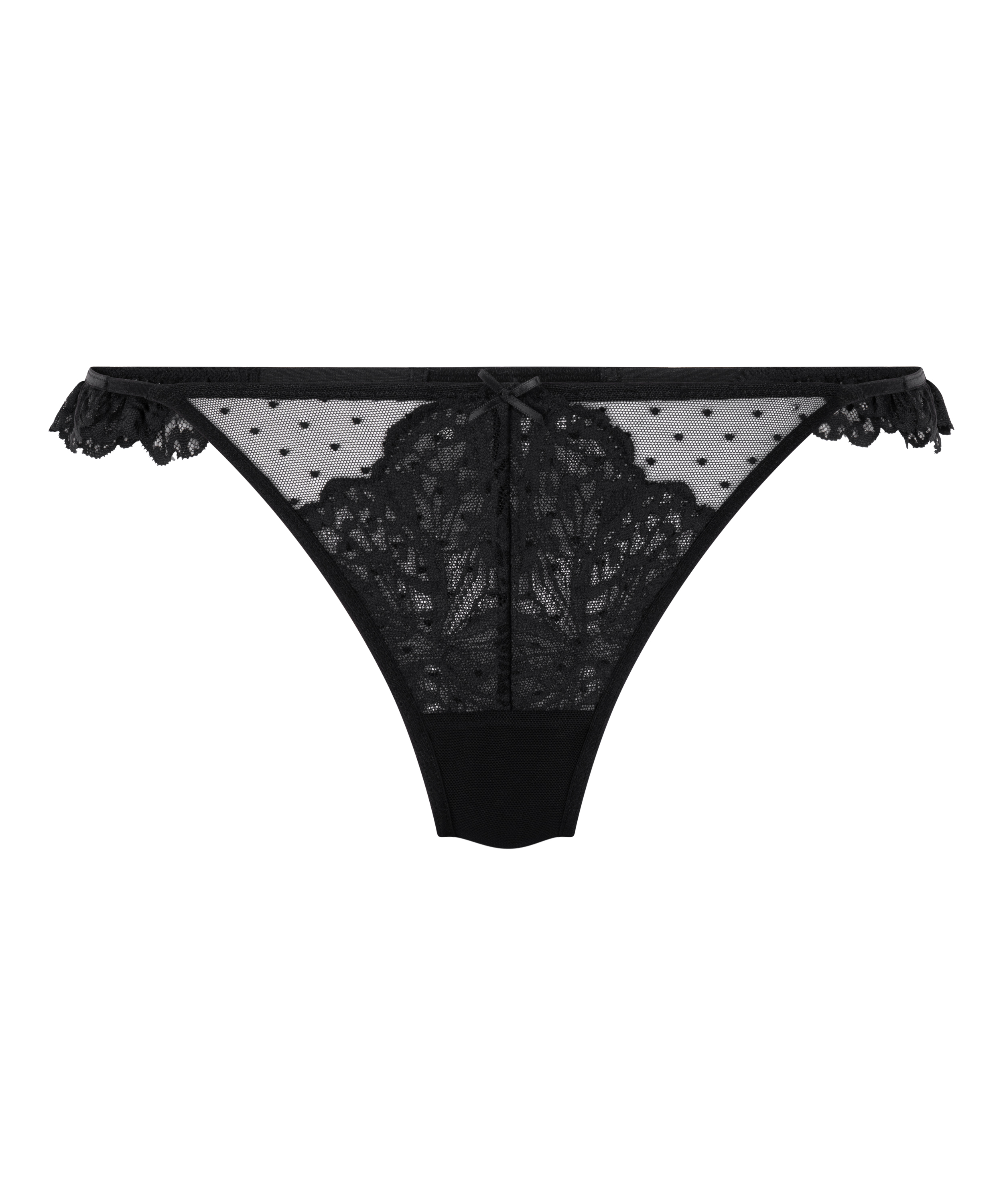 ¡Qué bonito es este tanga! Incluye tanto encaje como malla y un bonito lazo delante. ¡Se puede combinar con las prendas a juego para ir bien conjuntada!