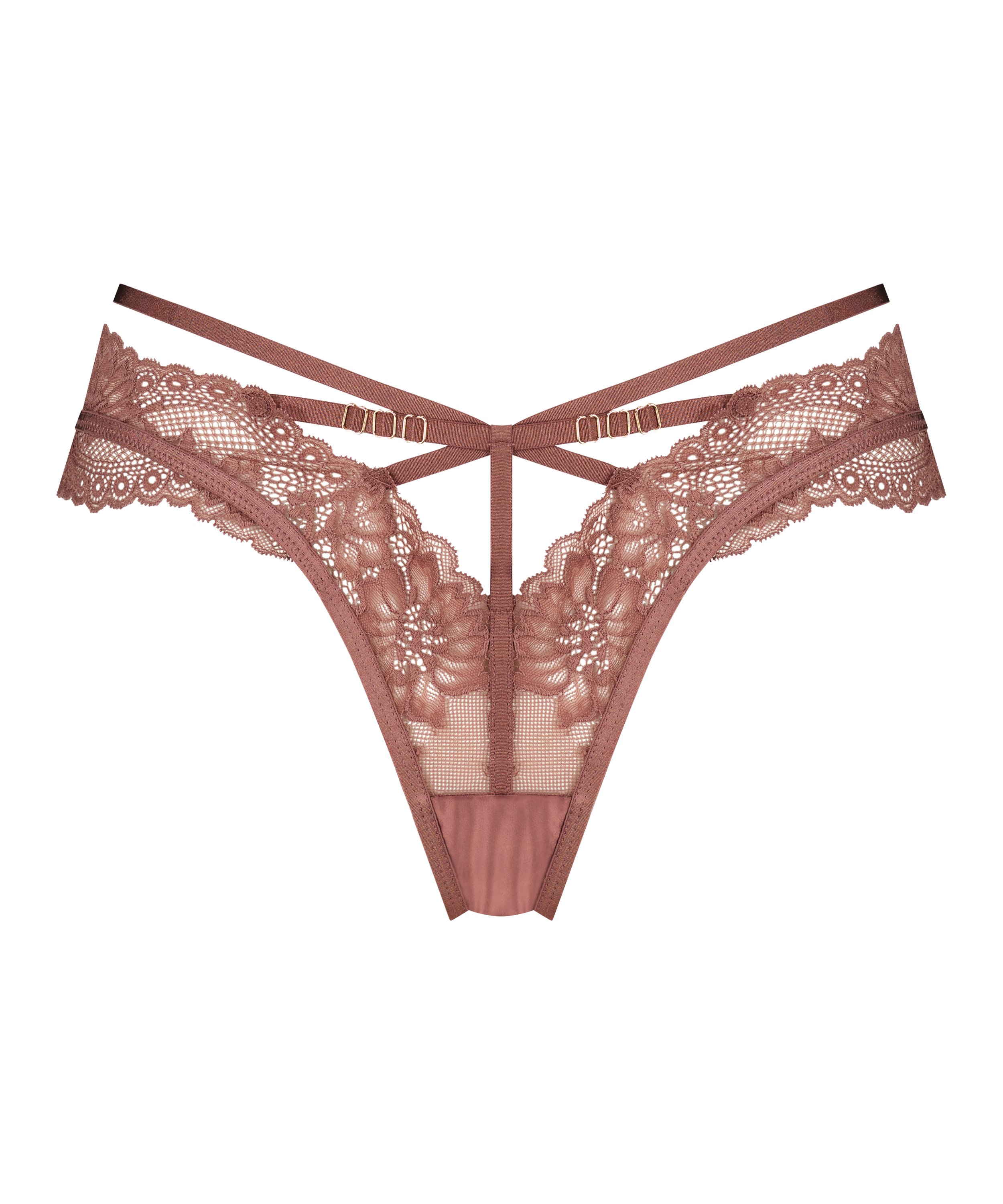 ¡No te pierdas este sexy tanga! Con un aspecto general de encaje en la parte delantera y trasera, con muchos detalles de tiras y herrajes dorados. ¡Completa el conjunto con el sujetador a juego!