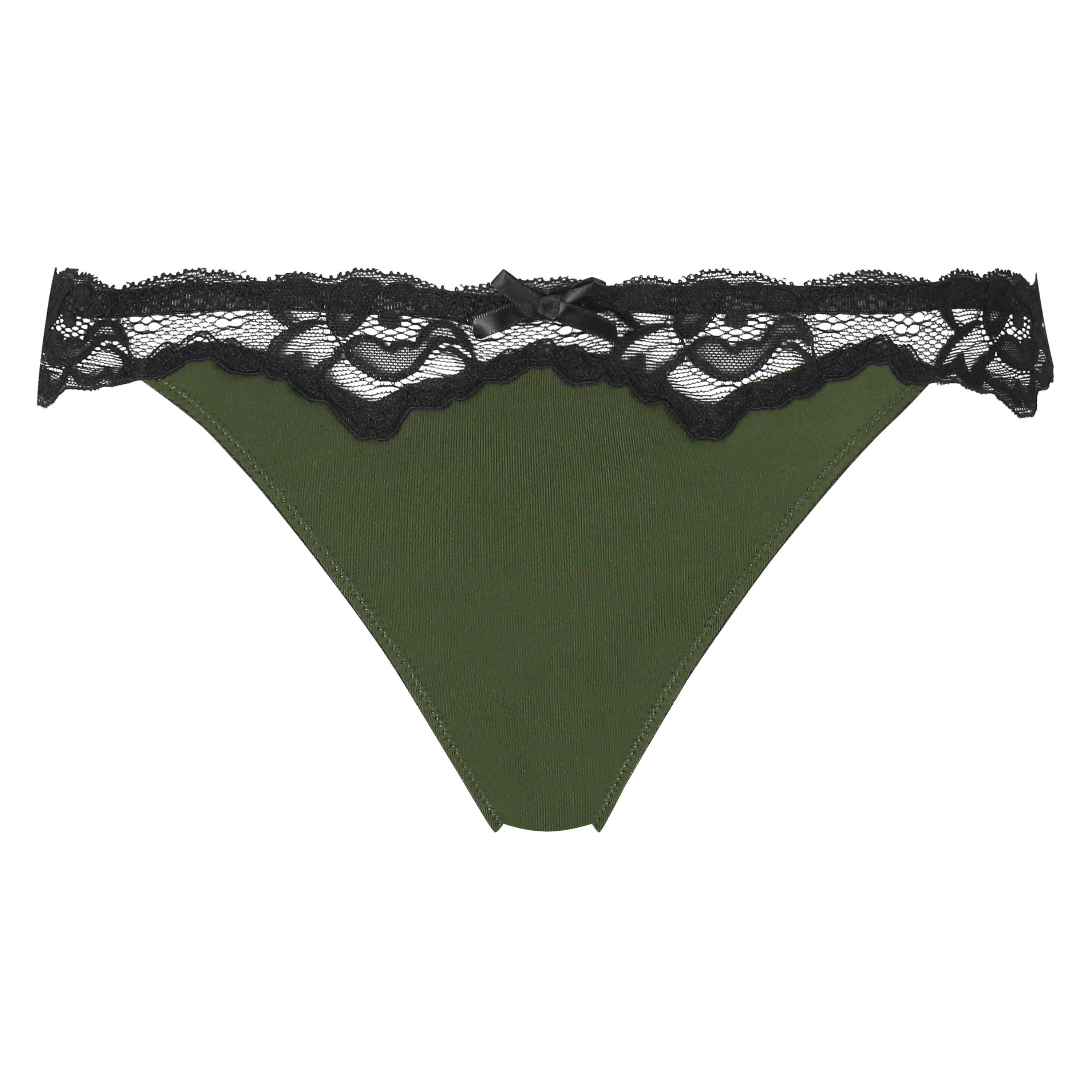 ¡Únete a nuestra obsesión por el encaje! El perfecto acabado de encaje semitransparente de este tanga hace que sea de lo más femenino.