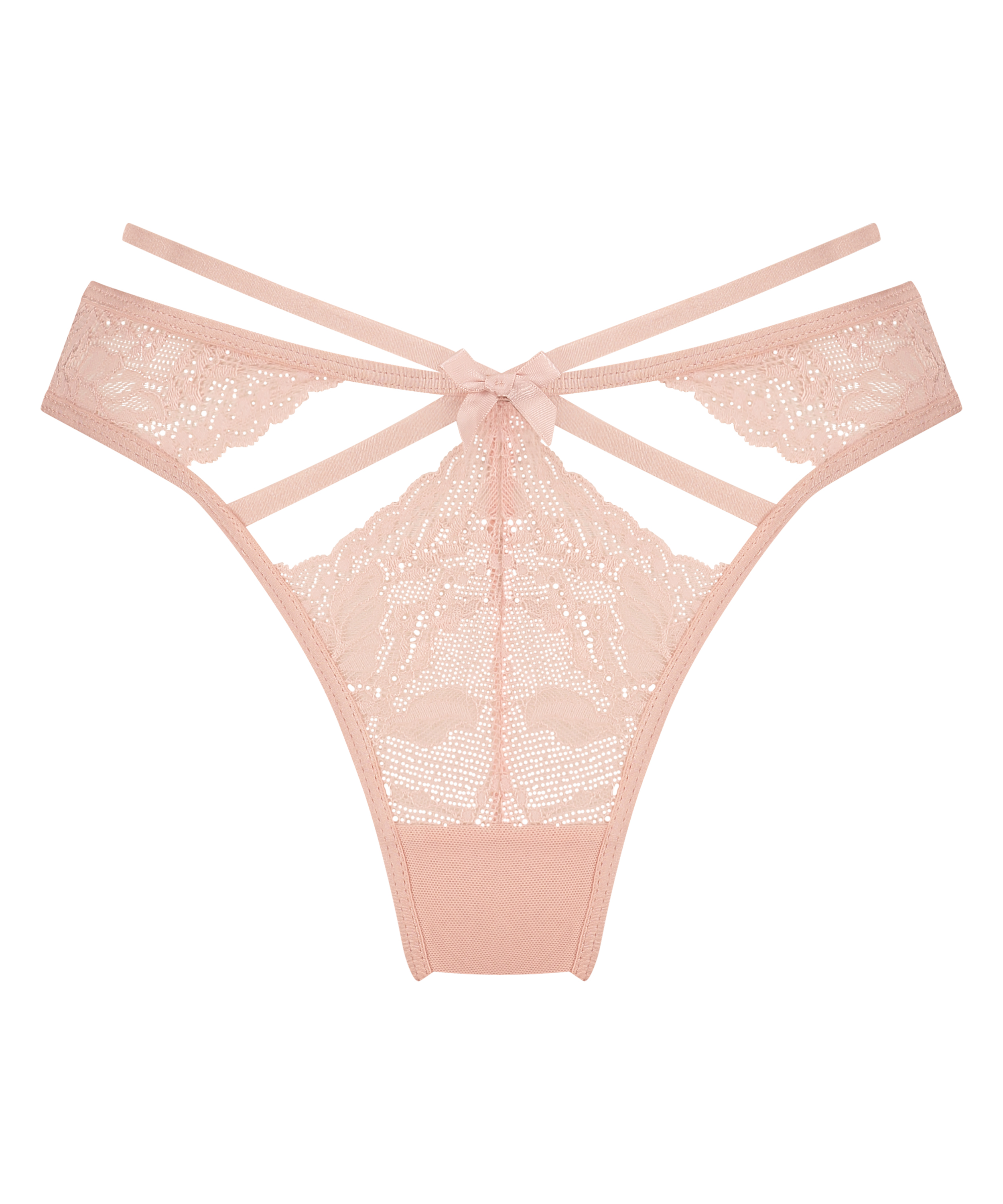 ¡Siéntete irresistible con este tanga! El tanga contiene muchos detalles de encaje y aberturas. Además, esta braguita tiene detalles de tiras sexis. Combina este tanga con el sujetador a juego.