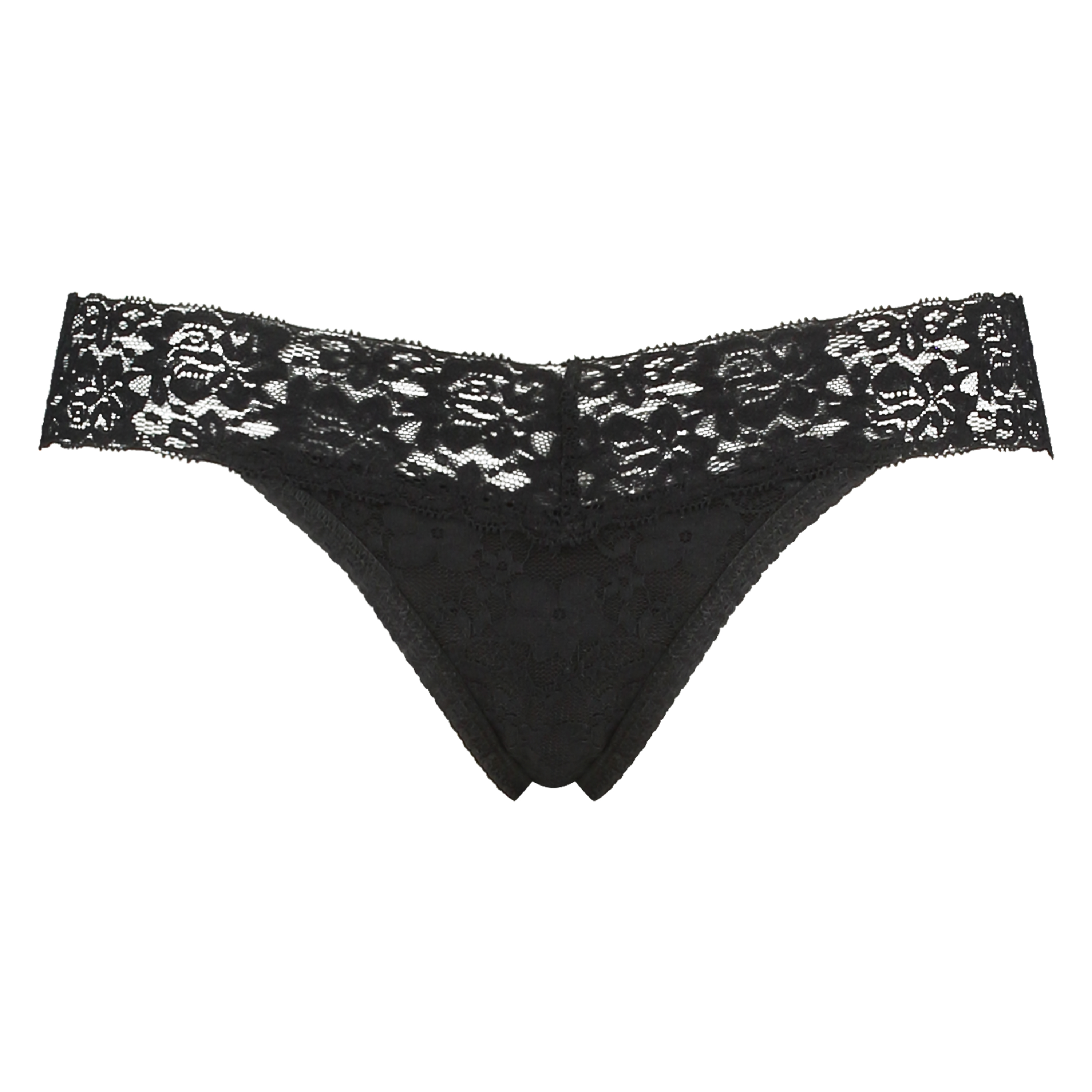 Tanga de corte ultra bajo y con un detalle de encaje y lazo en la parte delantera. Disponible en varios colores.