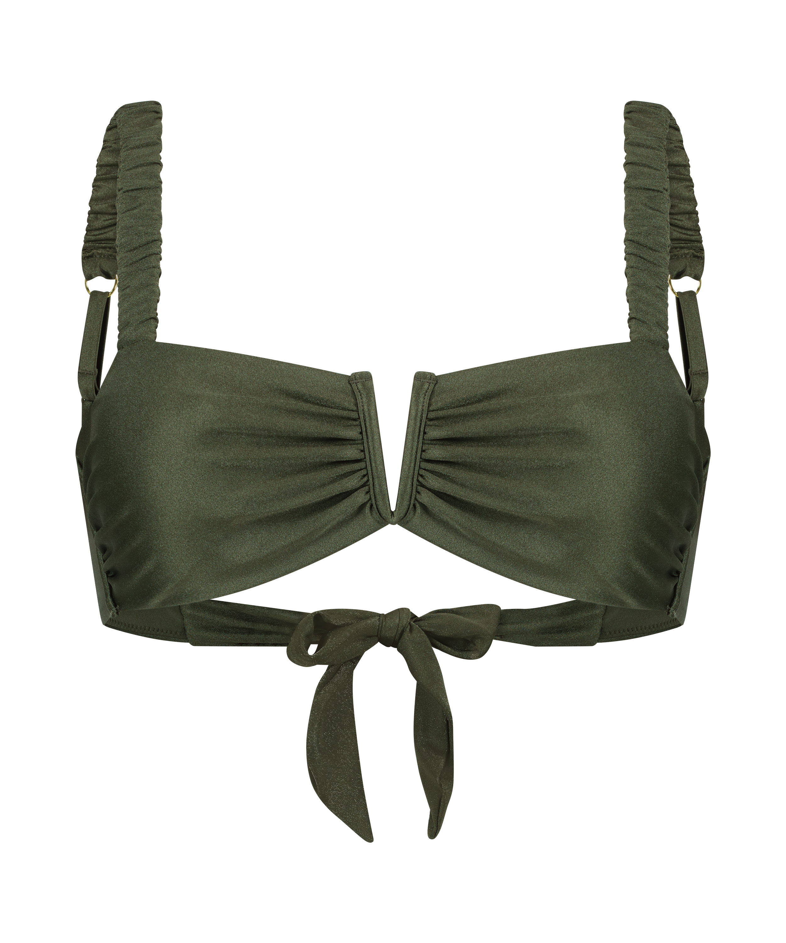 Este cómodo top de bikini es perfecto para un día de relax en la playa. Con un bonito corte en medio del pecho y detalles de fruncido en la parte delantera y los tirantes. ¡Encuentra la braguita a juego para completar el conjunto!