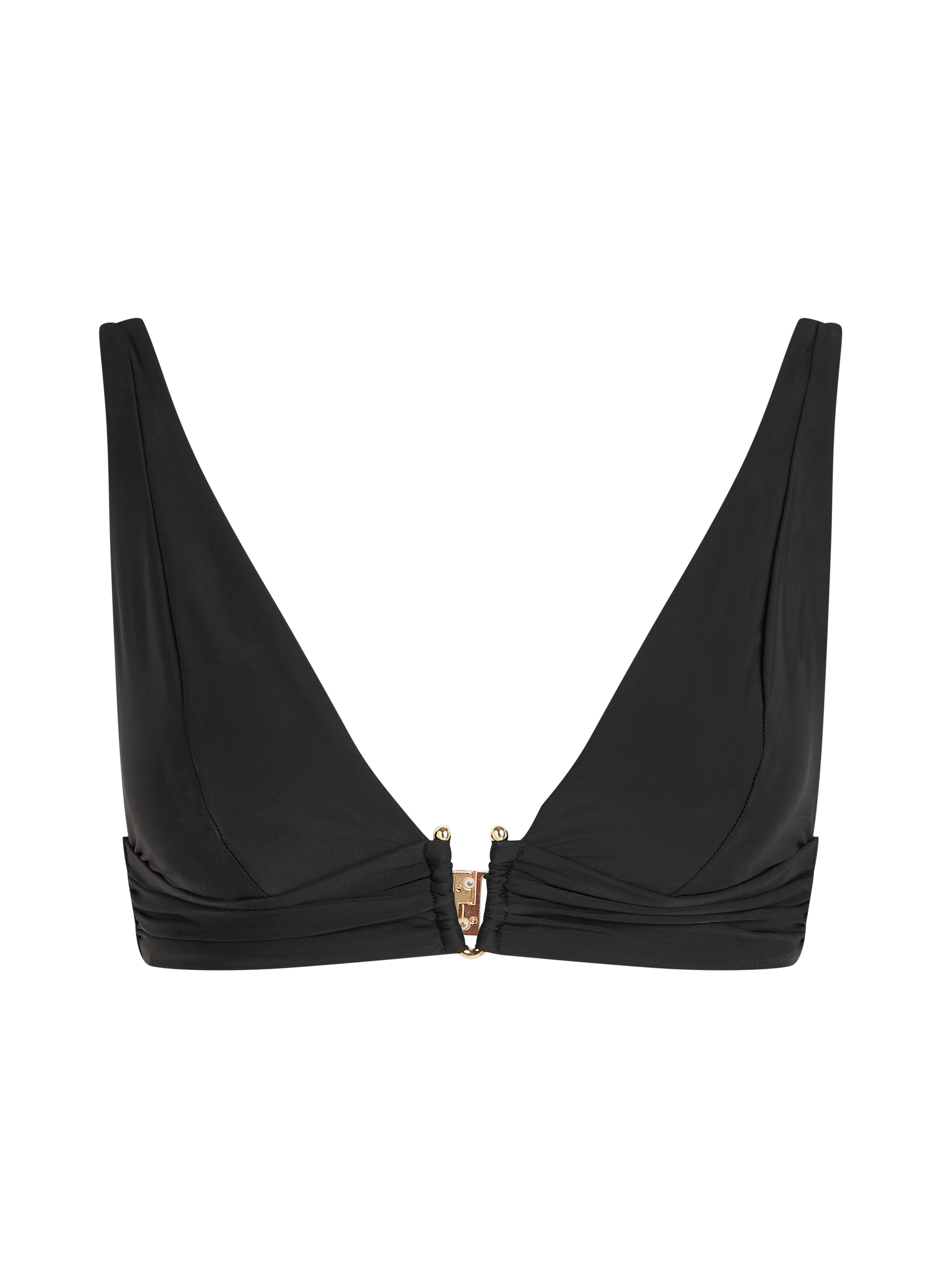 Llama la atención en la playa con este top de bikini, con un detalle de tachuelas en forma de V en la parte delantera. Este top de bikini combina estilo y comodidad sin esfuerzo. Tanto si deseas descansar junto a la piscina como zambullirte en las olas del mar, esta prenda es perfecta. Nuestros tops de triángulo son fáciles de ajustar con tiras al cuello y en la espalda, para adaptarse a tu preferencia de cobertura. Sin embargo, si deseas cubrir el pecho algo más, te recomendamos escoger una talla más.