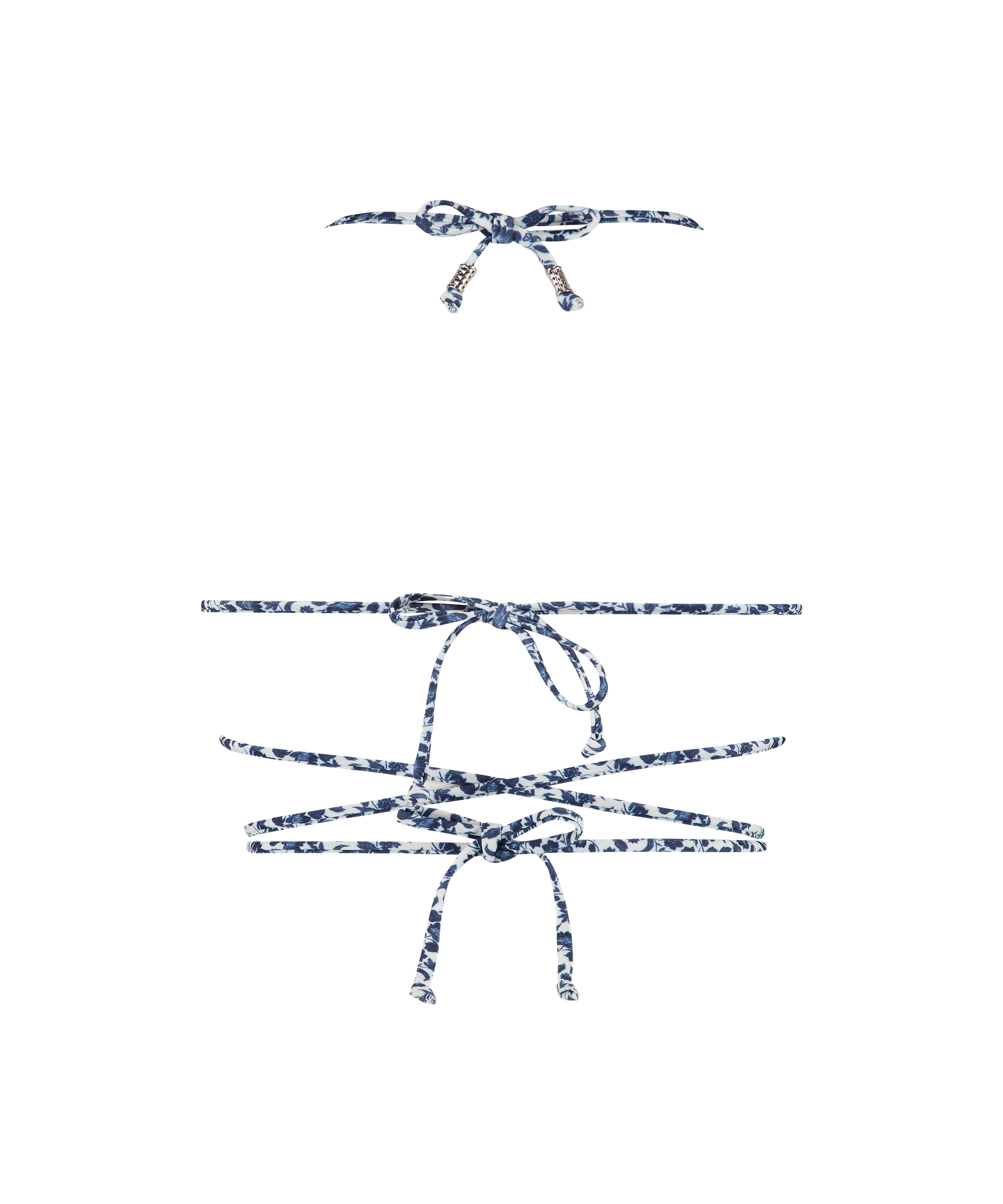 ¡Llama la atención con este increíble top de triángulo con relleno! Totalmente ajustable a tu cuerpo con el cierre para anudar en el cuello y la espalda. Decorado con bonitos herrajes y detalles de tiras para abrazar tu cintura. ¡Encuentra la braguita a juego para completar el «look»!