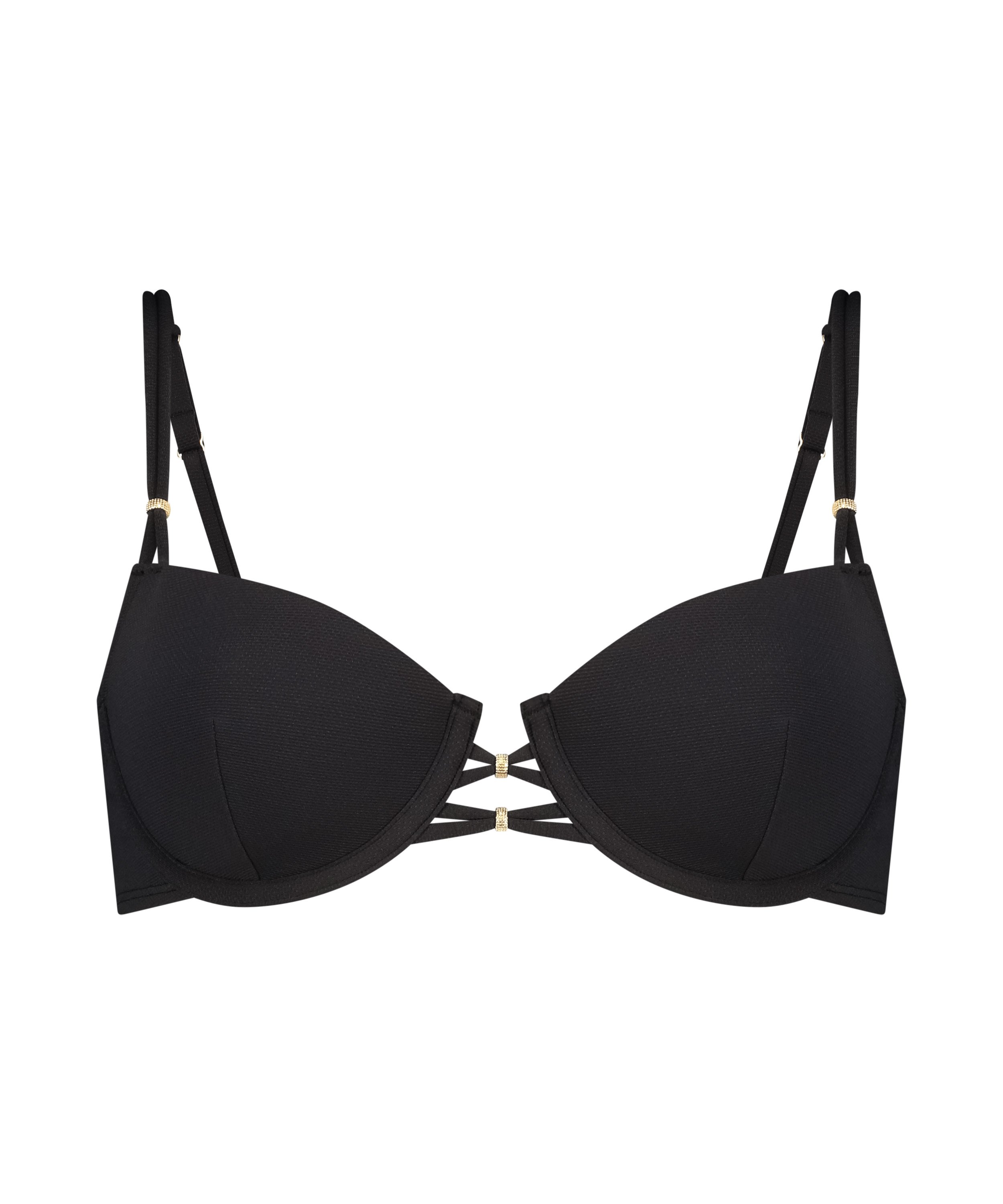 ¡Disfruta de un chapuzón en la playa con nuestro elegante top de bikini! Con sujeción mediante aros y un elegante diseño de tiras entre las copas adornadas con cuentas, esta pieza ofrece estilo y comodidad. También cuenta con tirantes regulables para los hombros y un práctico cierre de clip en la parte posterior para un ajuste seguro. Puedes combinarlo con tus braguitas favoritas, ¡y ve preparándote para tomar el sol con estilo! Nuestros trajes de baño están confeccionados con tejidos y forros de alta calidad para ofrecer buena sujeción que se adapte a tu pecho. Si prefieres un ajuste más relajado, te recomendamos elegir una talla más.