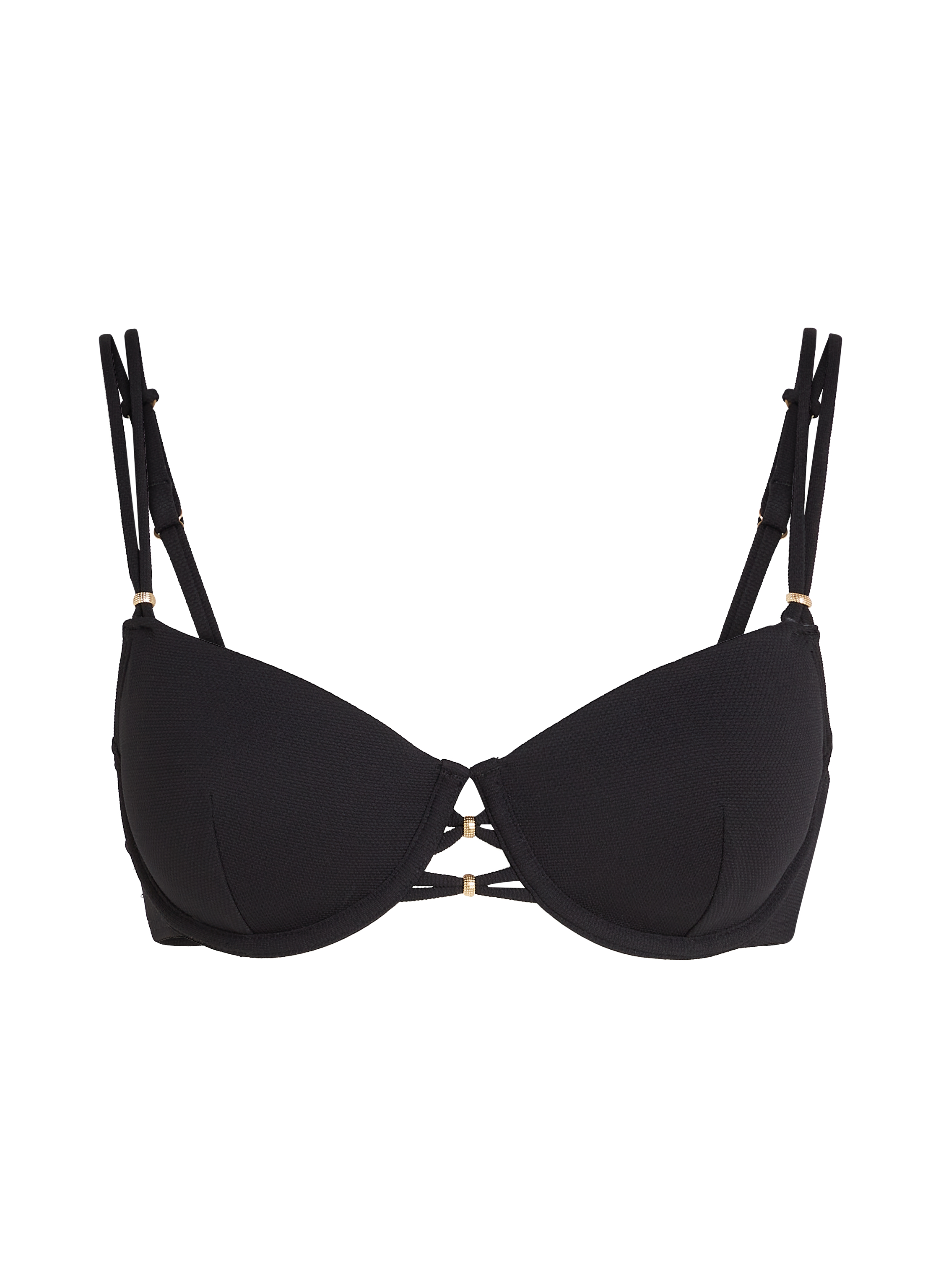 ¡Disfruta de un chapuzón en la playa con nuestro elegante top de bikini! Con sujeción mediante aros y un elegante diseño de tiras entre las copas adornadas con cuentas, esta pieza ofrece estilo y comodidad. También cuenta con tirantes regulables para los hombros y un práctico cierre de clip en la parte posterior para un ajuste seguro. Puedes combinarlo con tus braguitas favoritas, ¡y ve preparándote para tomar el sol con estilo! Nuestros trajes de baño están confeccionados con tejidos y forros de alta calidad para ofrecer buena sujeción que se adapte a tu pecho. Si prefieres un ajuste más relajado, te recomendamos elegir una talla más.