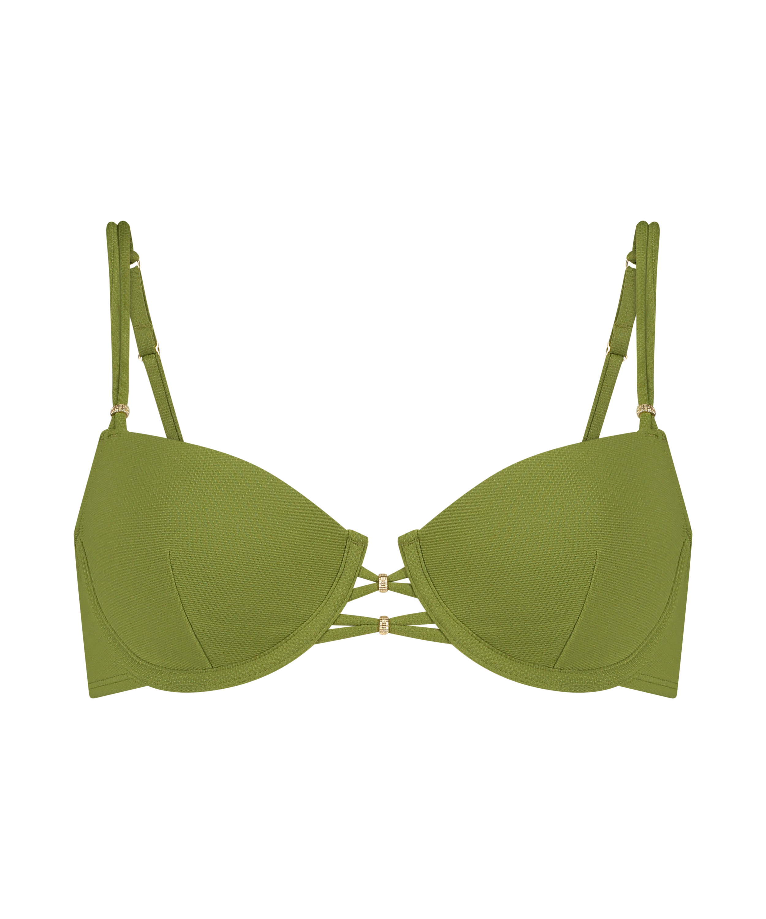 ¡Disfruta de un chapuzón en la playa con nuestro elegante top de bikini! Con sujeción mediante aros y un elegante diseño de tiras entre las copas adornadas con cuentas, esta pieza ofrece estilo y comodidad. También cuenta con tirantes regulables para los hombros y un práctico cierre de clip en la parte posterior para un ajuste seguro. Puedes combinarlo con tus braguitas favoritas, ¡y ve preparándote para tomar el sol con estilo! Nuestros trajes de baño están confeccionados con tejidos y forros de alta calidad para ofrecer buena sujeción que se adapte a tu pecho. Si prefieres un ajuste más relajado, te recomendamos elegir una talla más.
