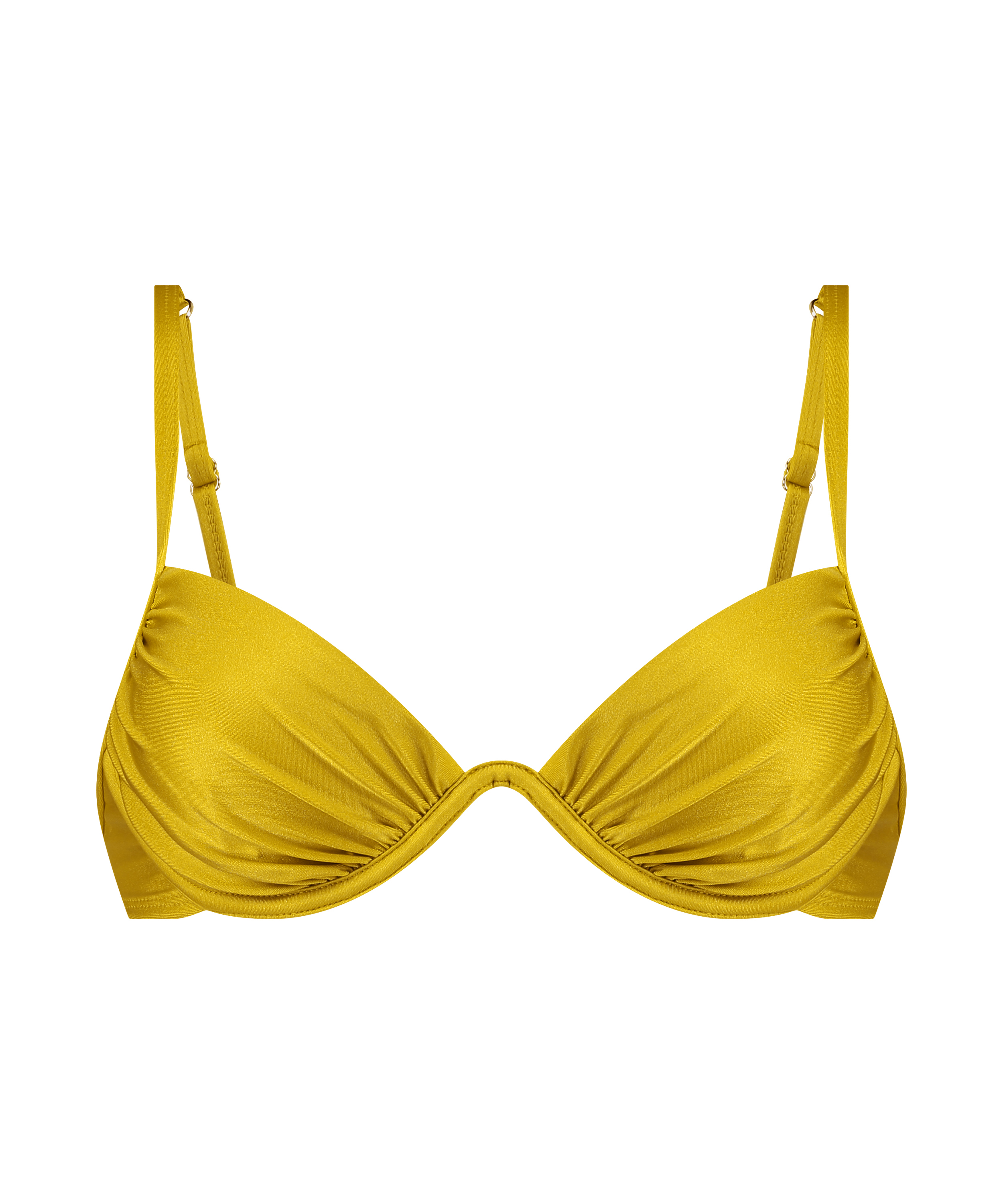 Este top de bikini tiene un aspecto de alta costura, perfecto para ti. El material es brillante y contiene detalles dorados. Combínalo con otros artículos para obtener el conjunto completo.