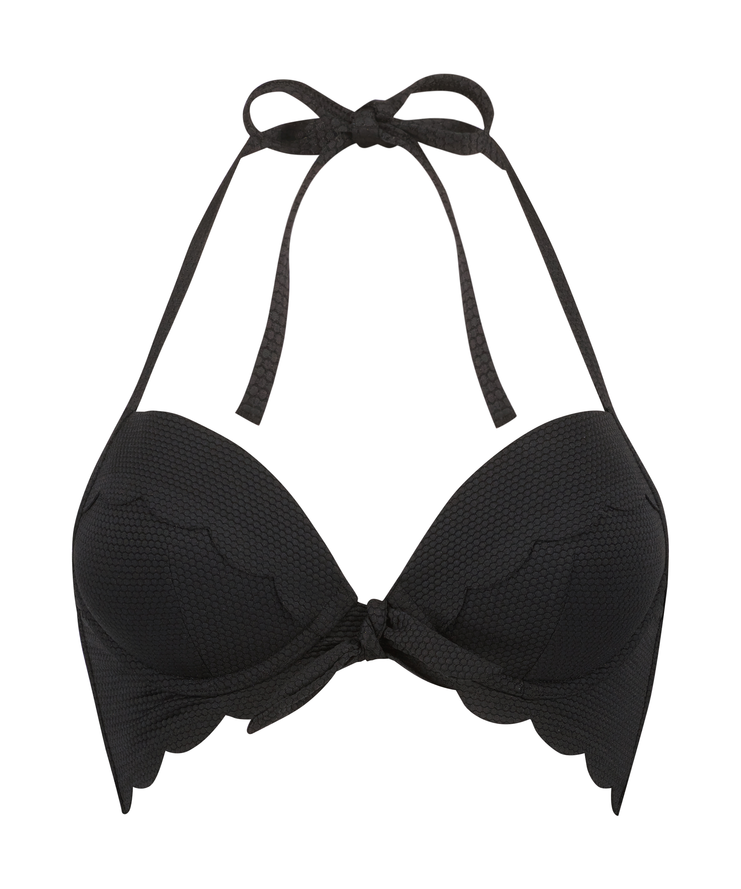 Top de bikini preformado con efecto realce Scallop Copa A - E - Negro