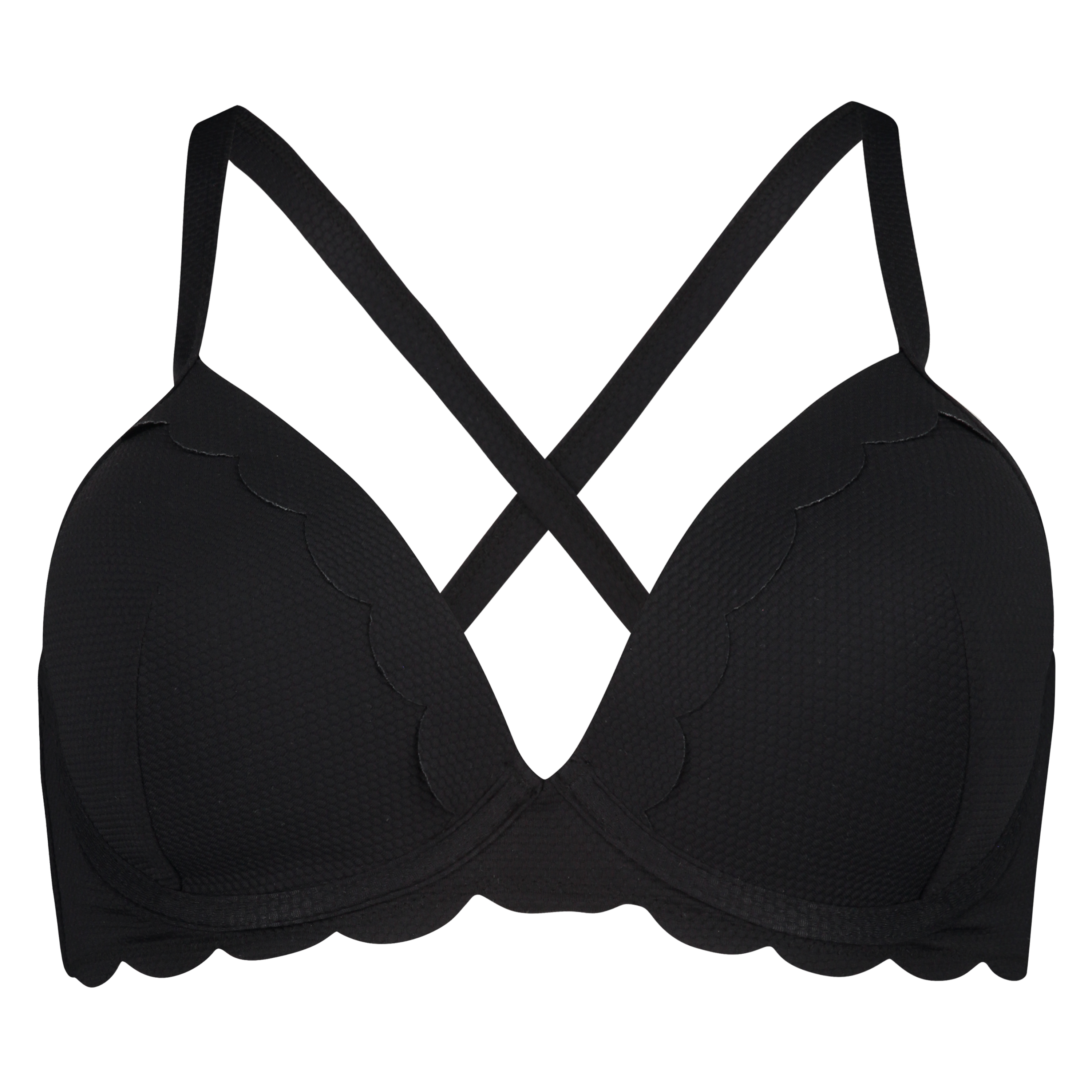¡Este top de bikini es un artículo básico perfecto! Tiene un acabado de ribete festoneado. Las cintas están cruzadas en la parte posterior, para ofrecer aún más soporte. Combínalo con los artículos a juego.