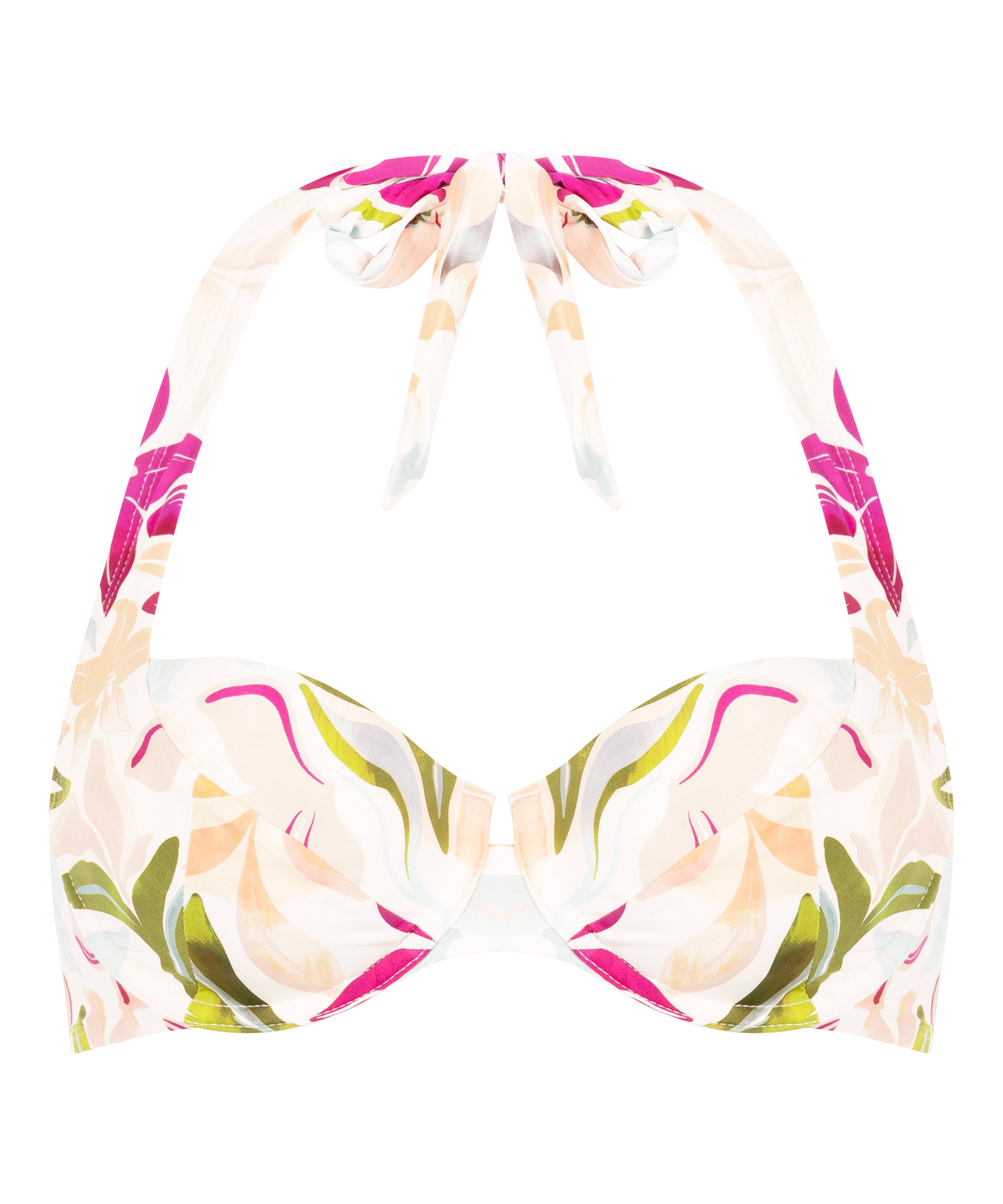 Destaca tu look playero con este elegante top de baño sin relleno. Su diseño con aros ofrece elevación y sujeción, mientras el delicado estampado floral aporta un toque femenino. Se puede combinar con su braguita de bikini a juego para conseguir un conjunto de baño chic y seguro. Nuestros trajes de baño están confeccionados con tejidos y forros de alta calidad para ofrecer buena sujeción que se adapte a tu pecho. Si prefieres un ajuste más relajado, te recomendamos elegir una talla más.