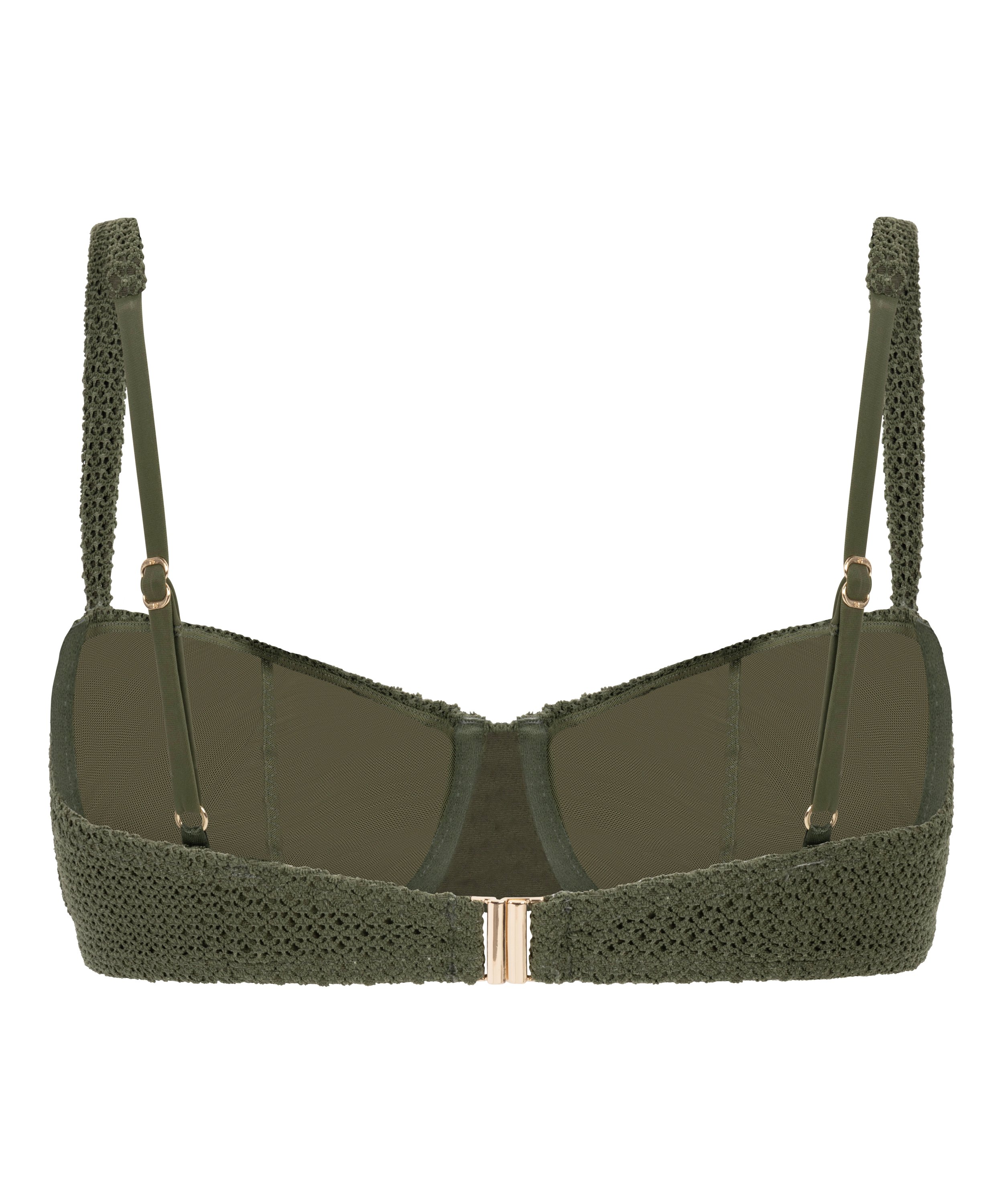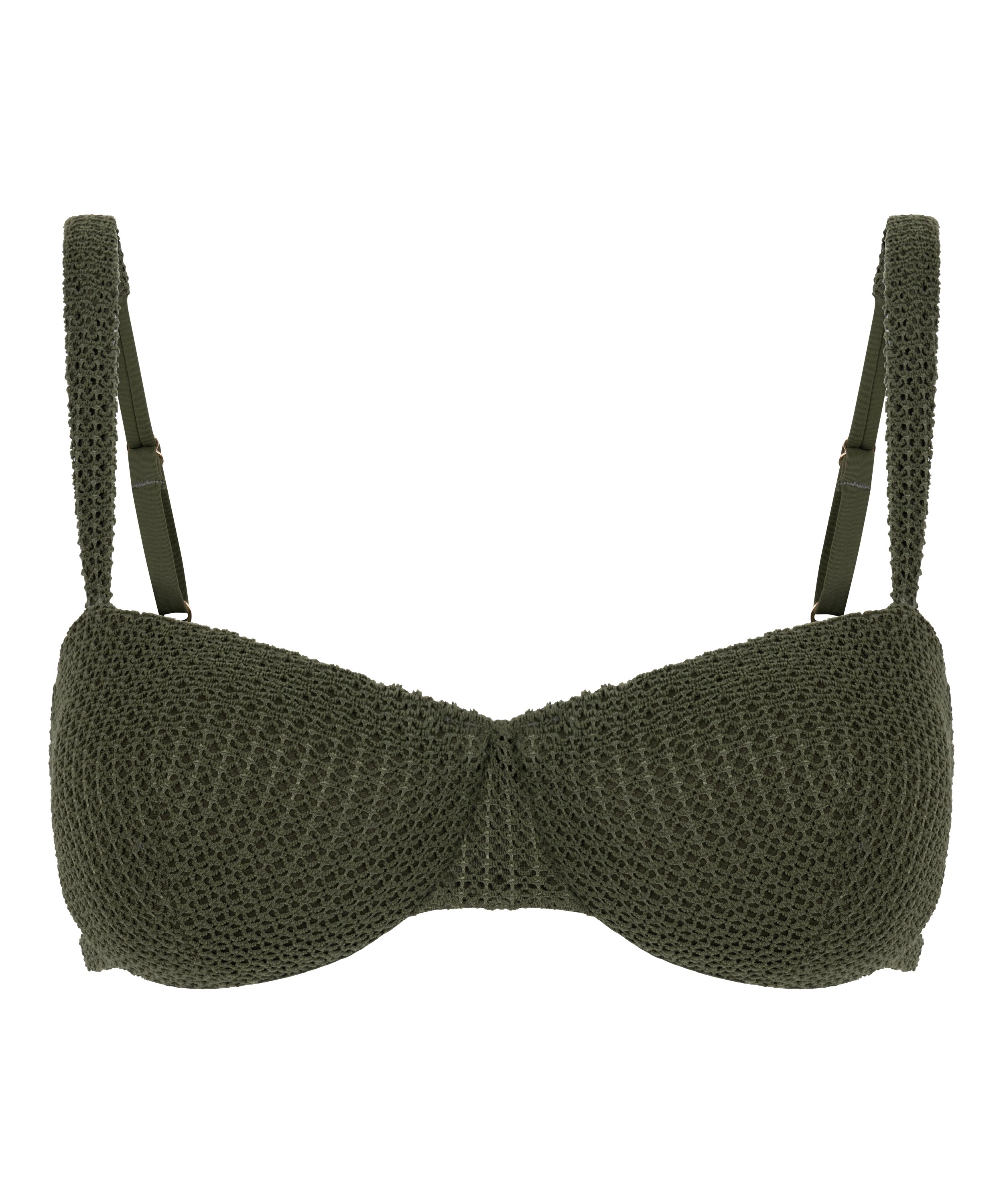 Impulsa tu colección de baño con este elegante top de baño de ganchillo. El diseño con aros proporciona sujeción estructurada, mientras las copas sin relleno ofrecen un ajuste con clase y natural. Gracias a su corte favorecedor y su tacto cómodo, esta prenda es ideal para crear un look playero chic y seguro. Nuestros trajes de baño están confeccionados con tejidos y forros de alta calidad para ofrecer buena sujeción que se adapte a tu pecho. Si prefieres un ajuste más relajado, te recomendamos elegir una talla más.