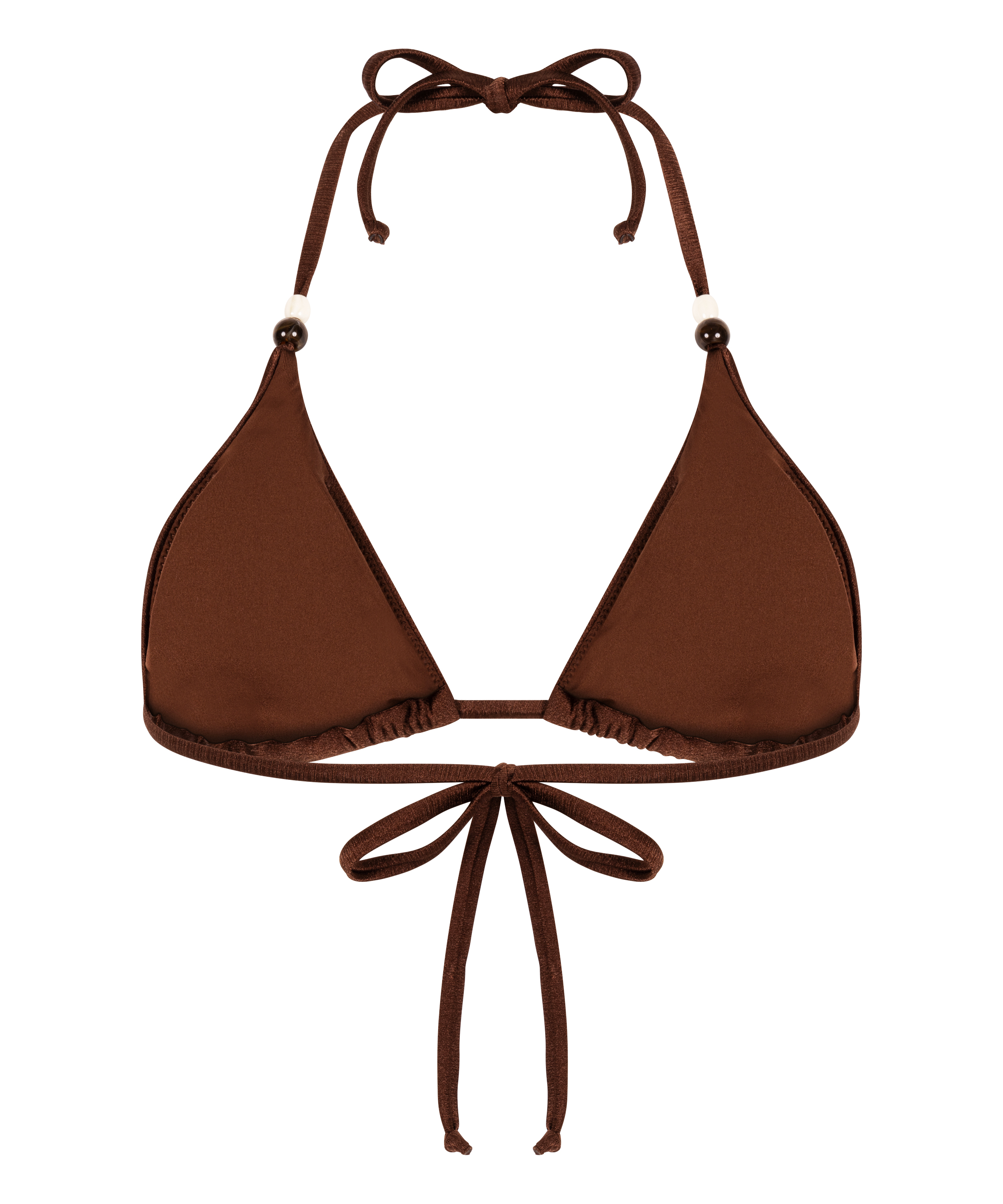 Impulsa tu colección de baño con el top triangular Kallua. Las perlas en los tirantes aportan sofisticación, mientras su diseño triangular ofrece un ajuste favorecedor y regulable. Ideal para combinar con su braguita de bikini y completar tu look playero. Nuestros tops de triángulo son fáciles de ajustar con tiras al cuello y en la espalda, para adaptarse a tu preferencia de cobertura. Sin embargo, si deseas cubrir el pecho algo más, te recomendamos escoger una talla más.
