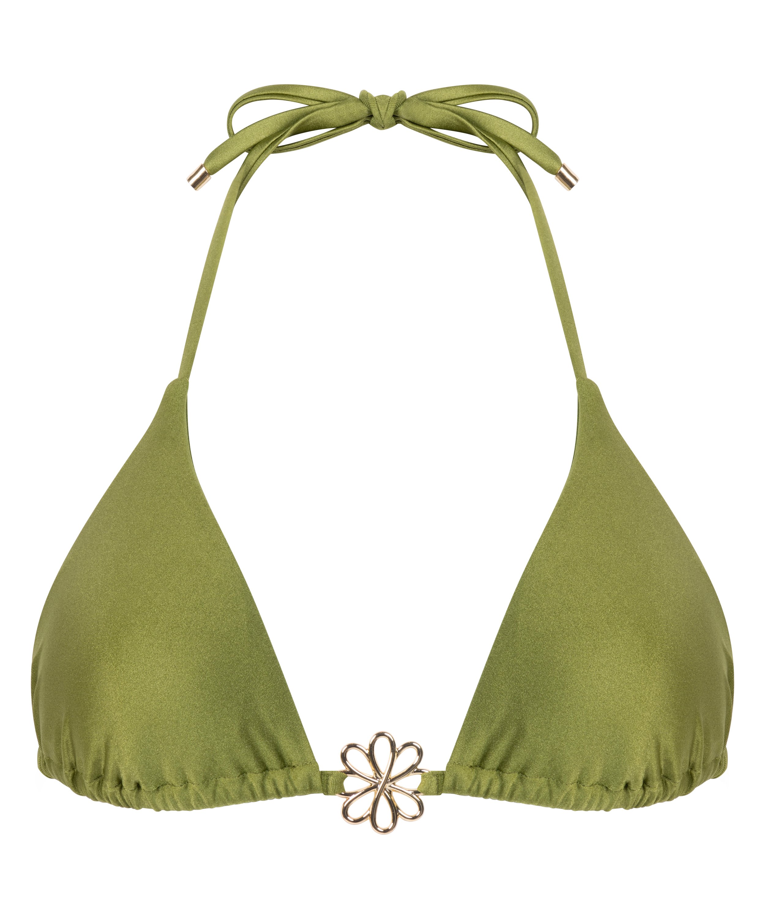 ¡Disfruta del sol con nuestro cautivador top de bikini! Decorada con un detalle central floral único que brilla maravillosamente bajo la luz del sol, esta pieza llamará la atención, ¡desde luego! Se puede combinar fácilmente con la braguita a juego para crear un conjunto impecable que desprenda elegancia y estilo.