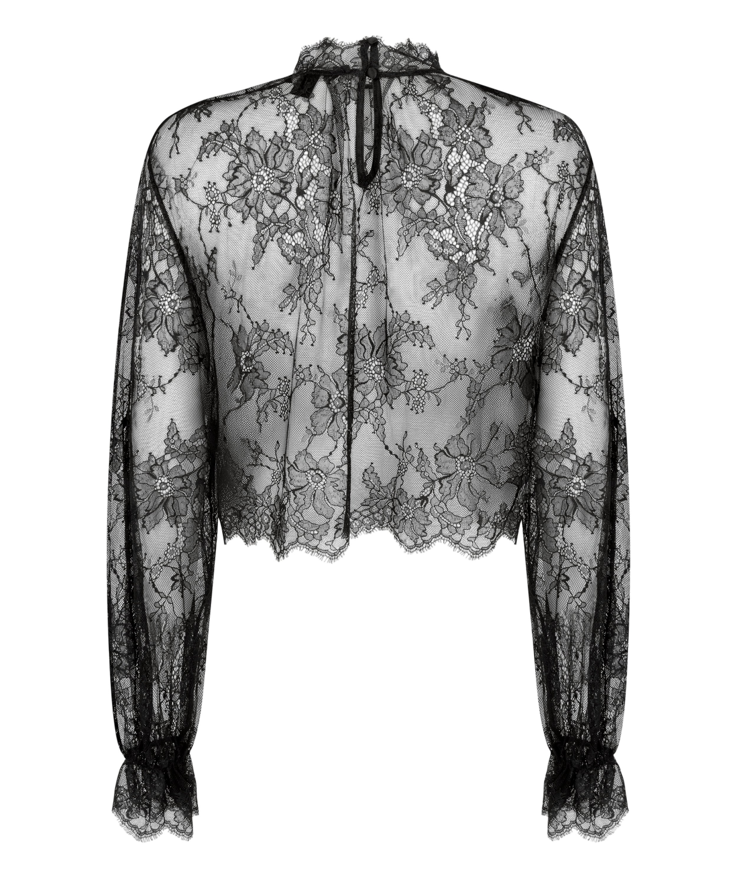 Este top de encaje de cuello alto delicado, detallado y chic es una celebración de la textura. Confeccionado en encaje integral, presenta intrincados motivos florales que ofrecen cobertura y atractivo a la vez, mientras que el escote alto añade un toque de elegancia de inspiración vintage. Se puede combinar con la braguita a juego para lucir un look completo.