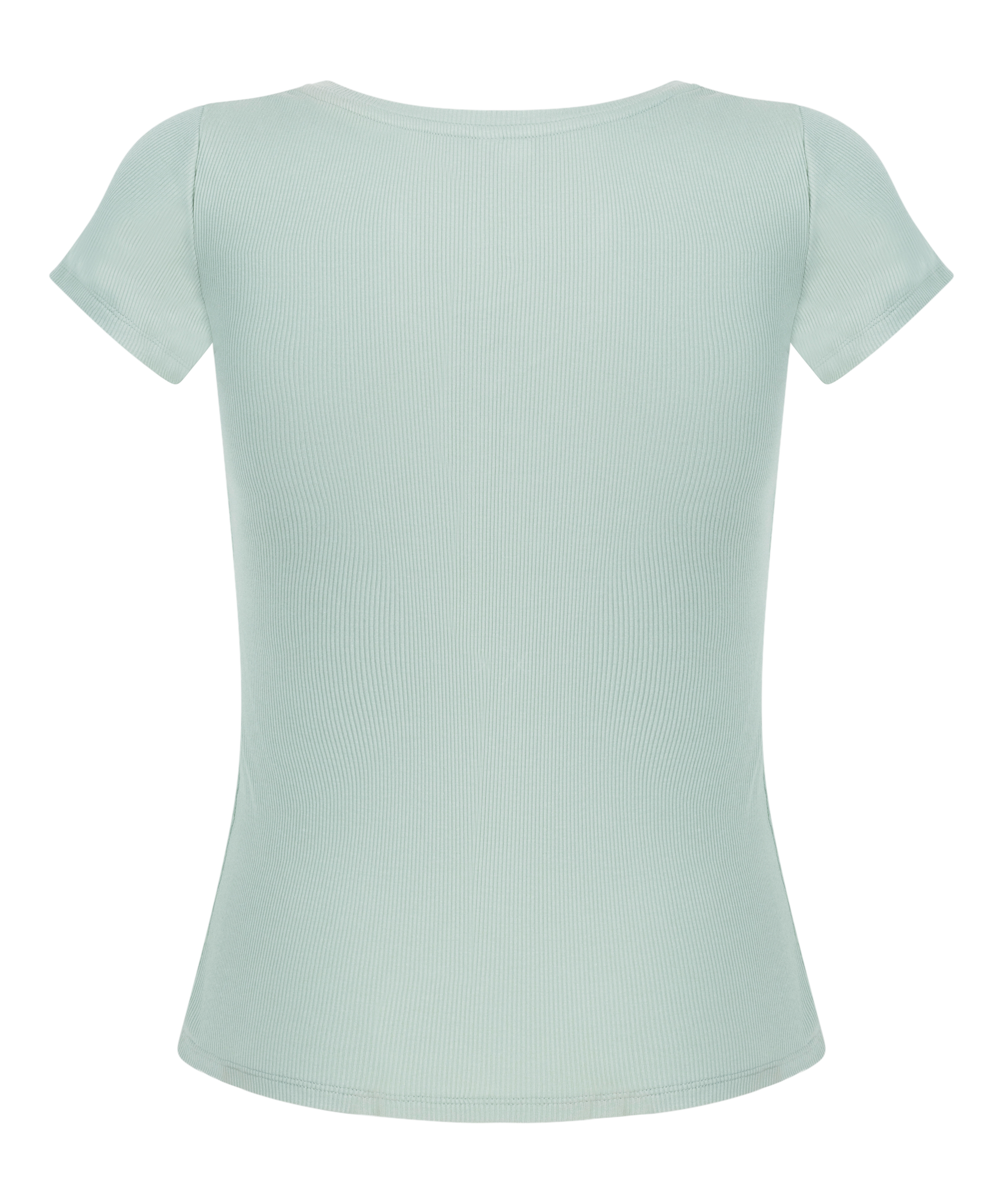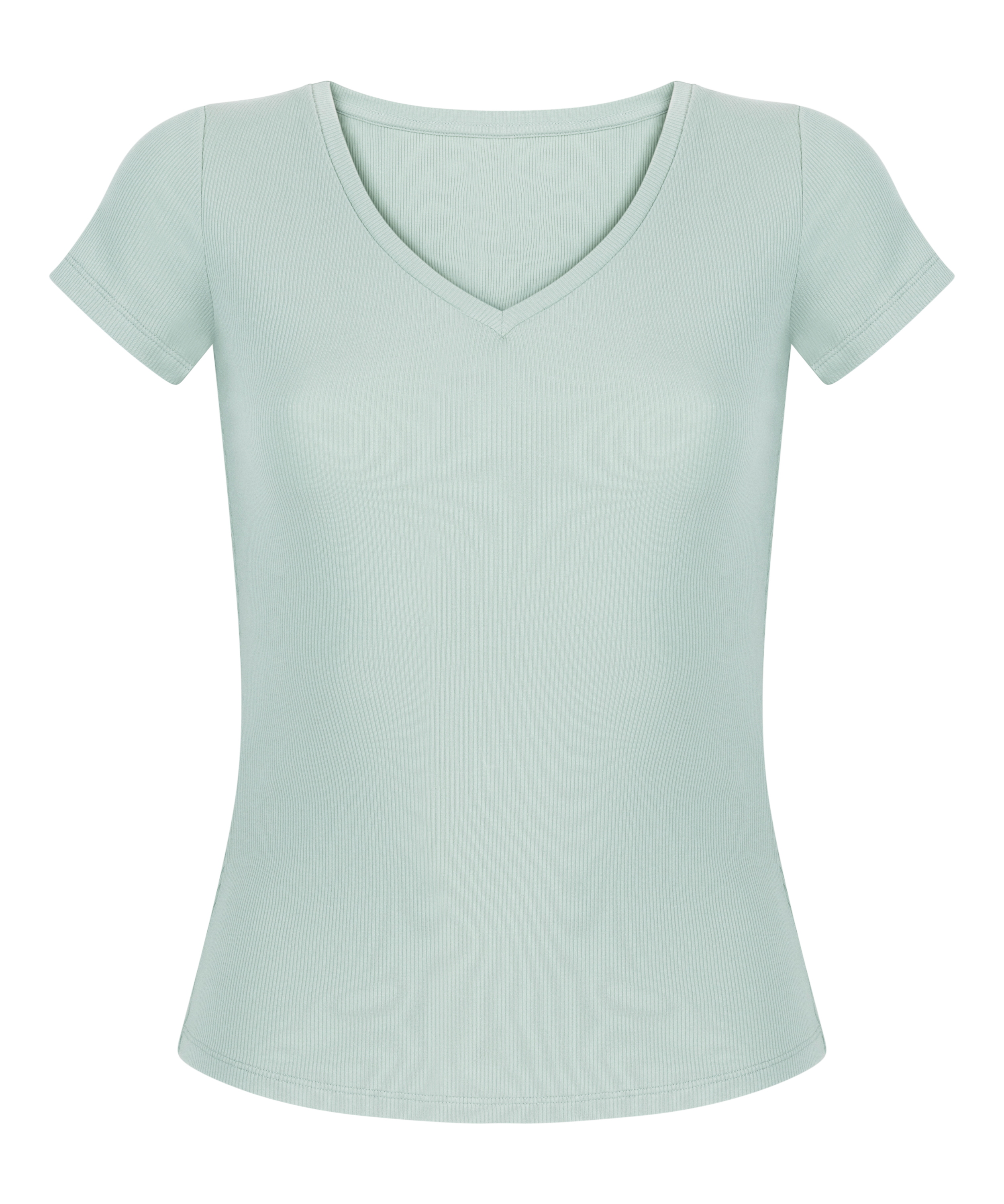 Esta sencilla pero bonita camiseta de pijama está confeccionada en un suave tejido de punto elástico acanalado, con un toque de elastano para favorecer su elasticidad. Su cuello de pico y manga corta contribuyen a ese estilo relajado y desenfadado, por lo que es ideal para una noche acogedora.