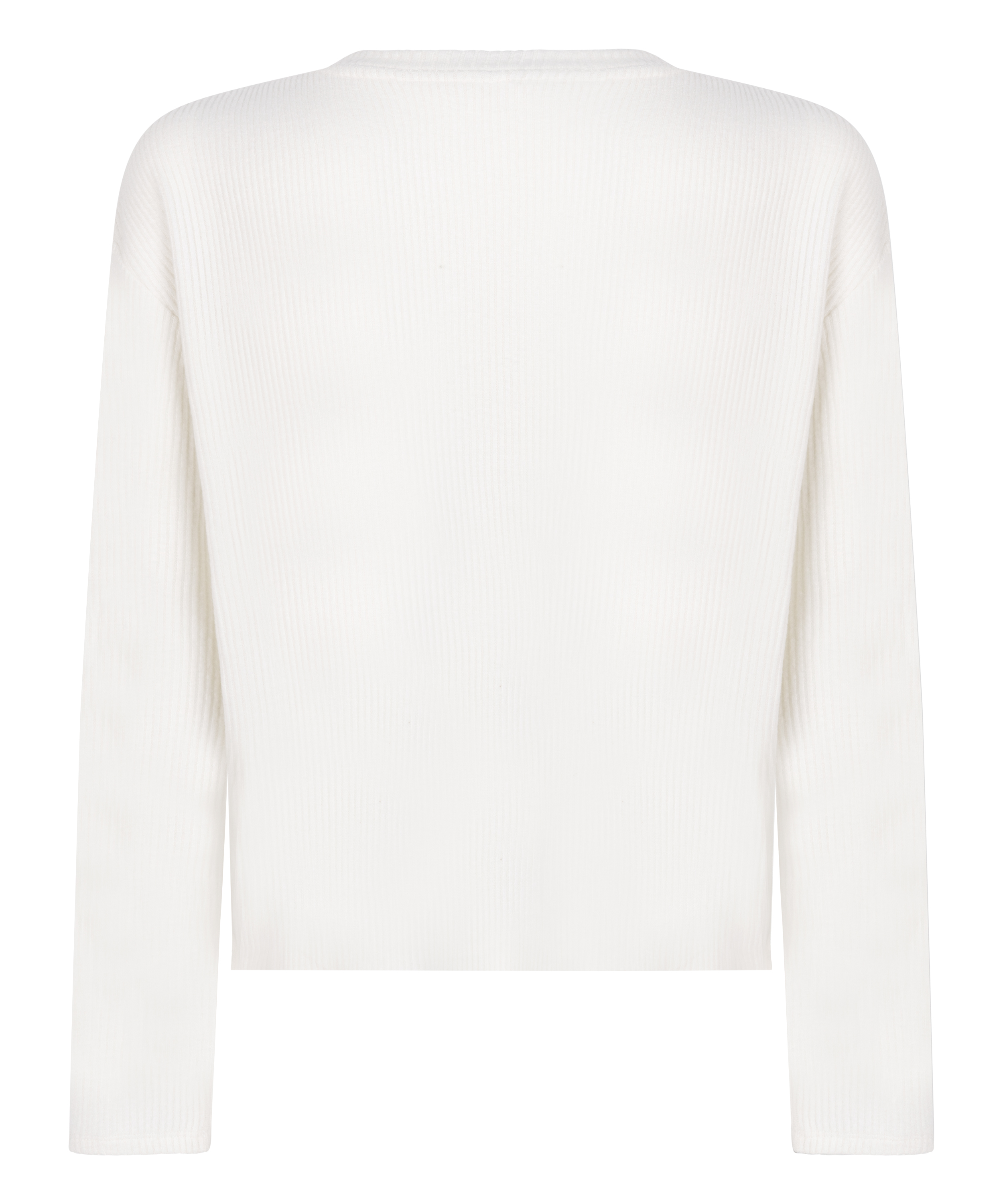 Este top de pijama clásico es el complemento ideal para tu colección de ropa de noche. Está confeccionado con un tejido acanalado tan suave que es todo un abrazo acogedor. Tiene cuello redondo y manga larga, por lo que es perfecto para las frías noches de primavera.