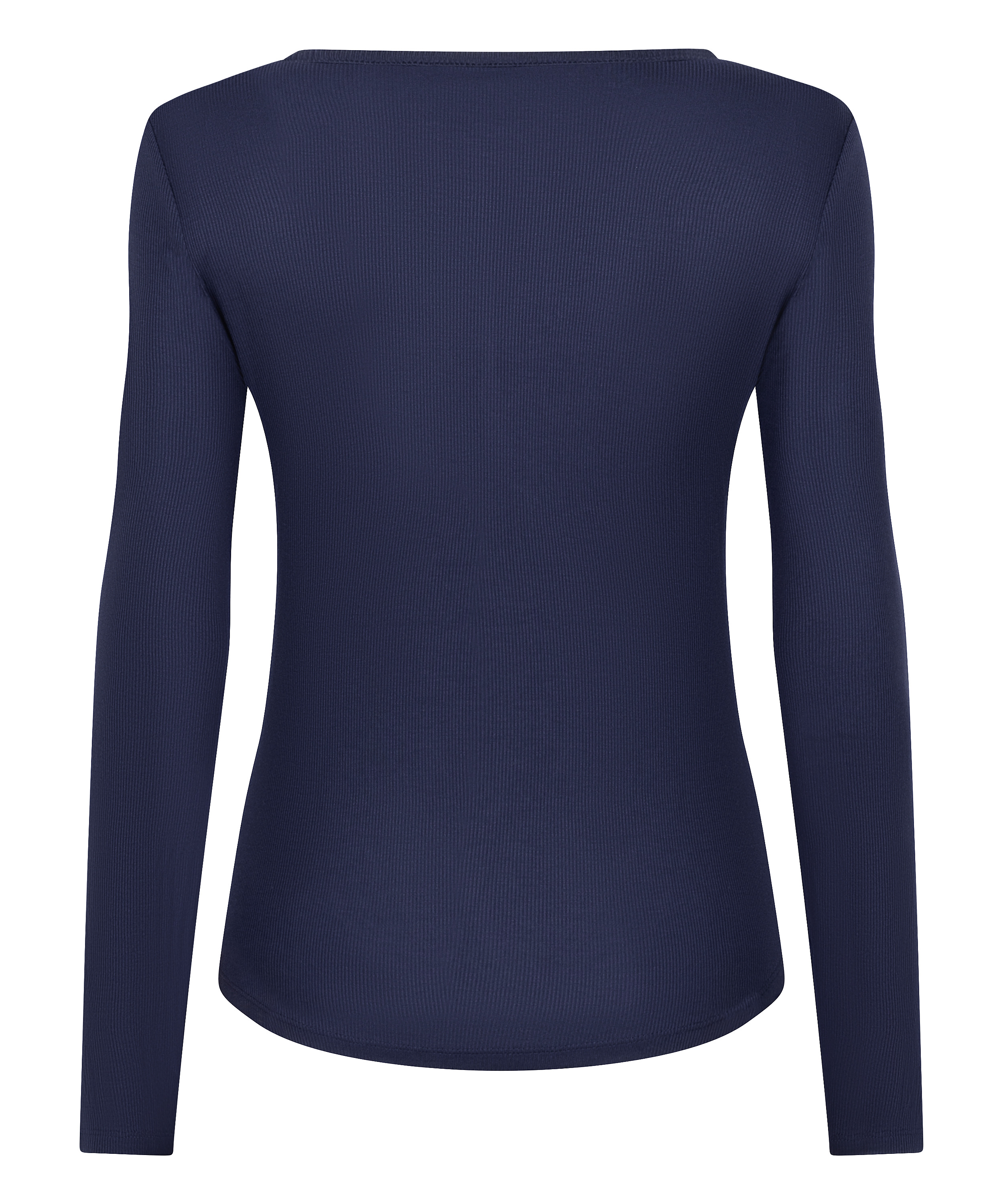 Envuélvete en comodidad con nuestro top de pijama: la mezcla perfecta de suavidad y estilo. Confeccionado en un tejido elástico de canalé que se mueve contigo, este top presenta un favorecedor corte entallado, manga larga y cuello abotonado para un toque clásico. Tanto si estás descansando en casa como descansando por la noche, es la prenda que necesitas para sentirte cómoda sin esfuerzo. Combínalo con tus prendas de dormir favoritas para un look ideal.