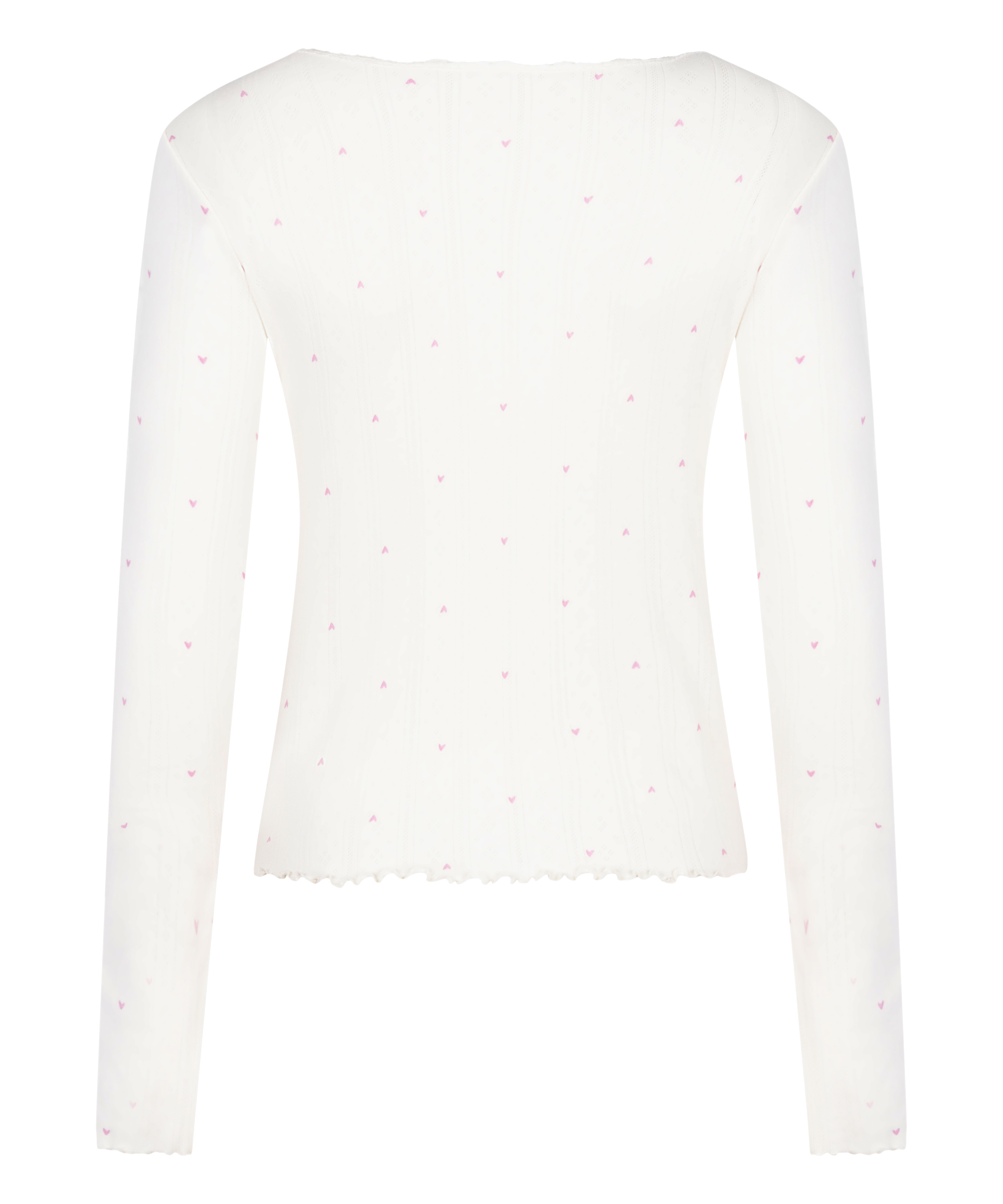 ¿Necesitas un top tan suave como dulce? Este top de pijama de manga larga de pointelle está confeccionado en algodón transpirable y salpicado de pequeños detalles de corazones que le dan un toque alegre. Su delicada textura y su corte relajado lo hacen perfecto para las noches acogedoras o las mañanas tranquilas. Se puede combinar con el pantalón o el short de pointelle para conseguir un conjunto de ensueño.