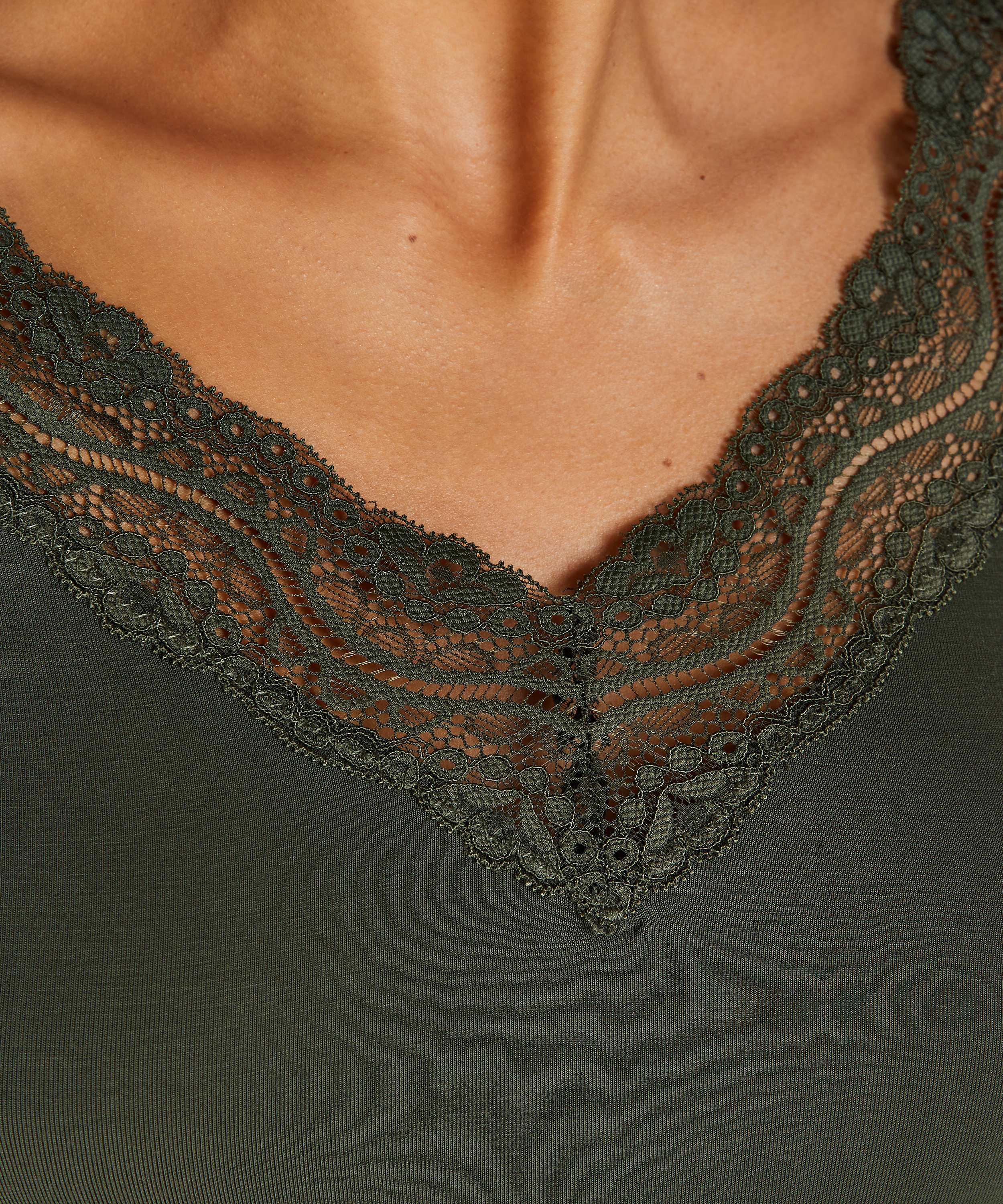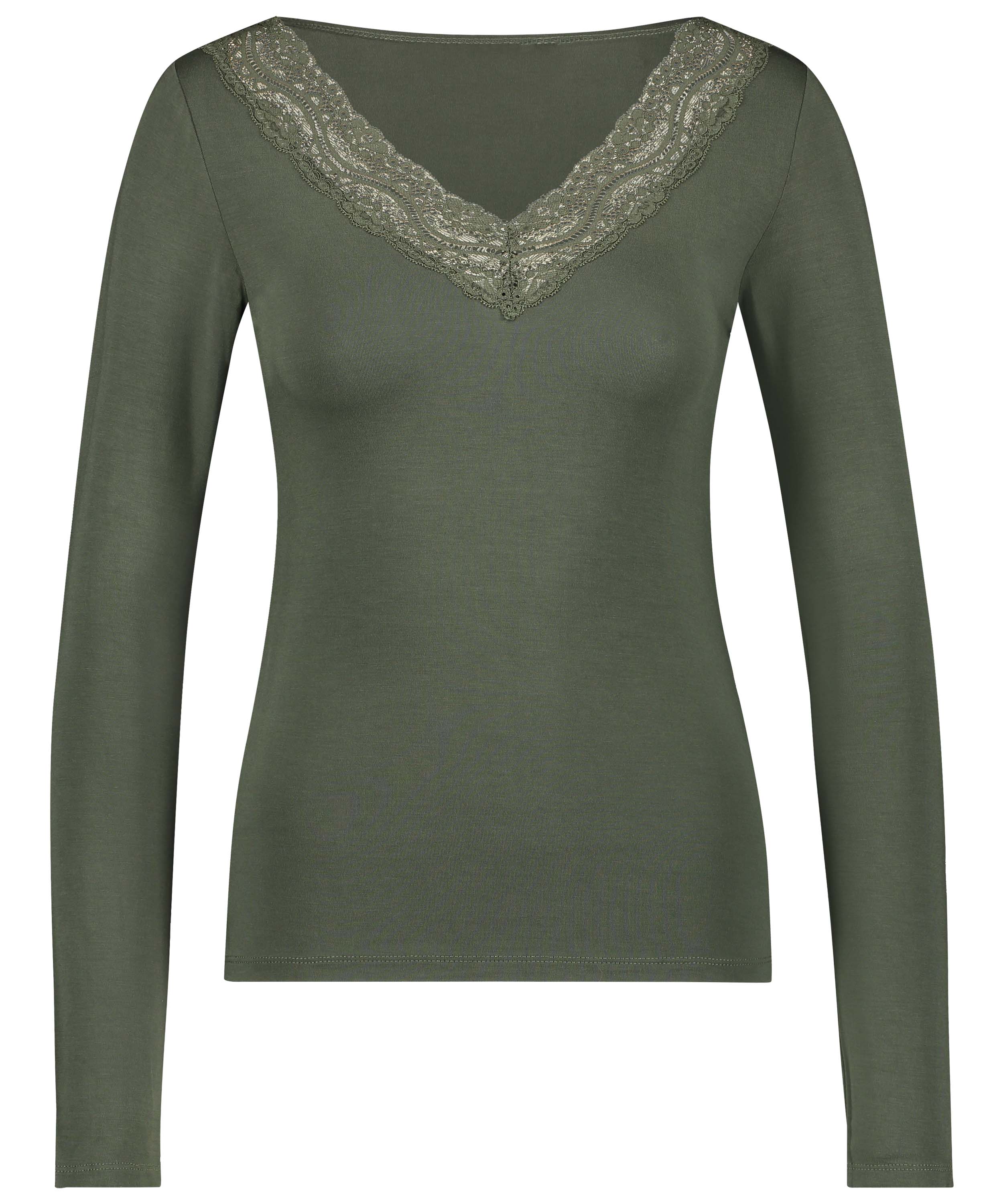 Ideal para relajarse. Esta camiseta es de manga larga y tiene una bonita tela. Tiene un bonito escote en V y la camiseta queda muy bien. Combina con tus pantalones de pijama favoritos.