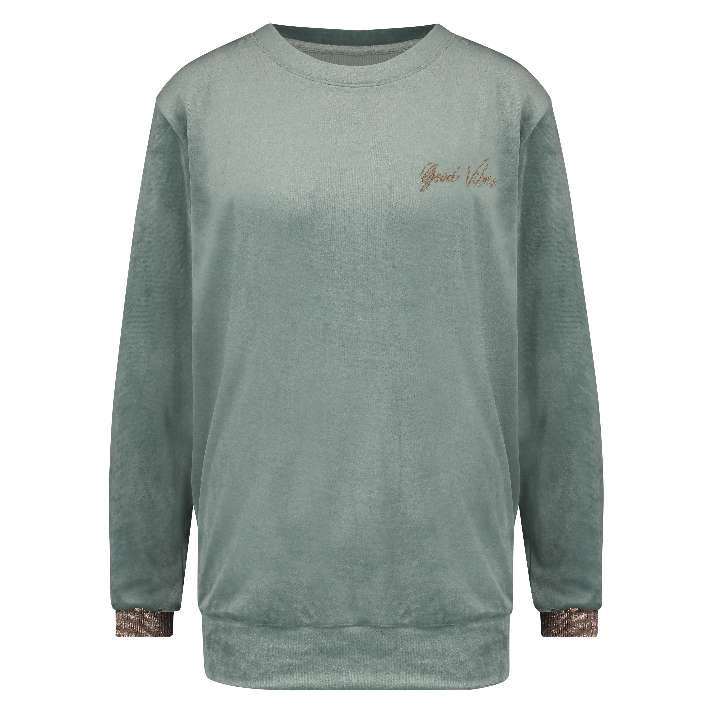 ¡Consigue más comodidad con este top! El top está hecho de un tejido de terciopelo que le hace más suave y tiene un acabado en las mangas con un detalle de lurex brillante. ¡Combínalo con el pantalón a juego para tener un conjunto precioso!