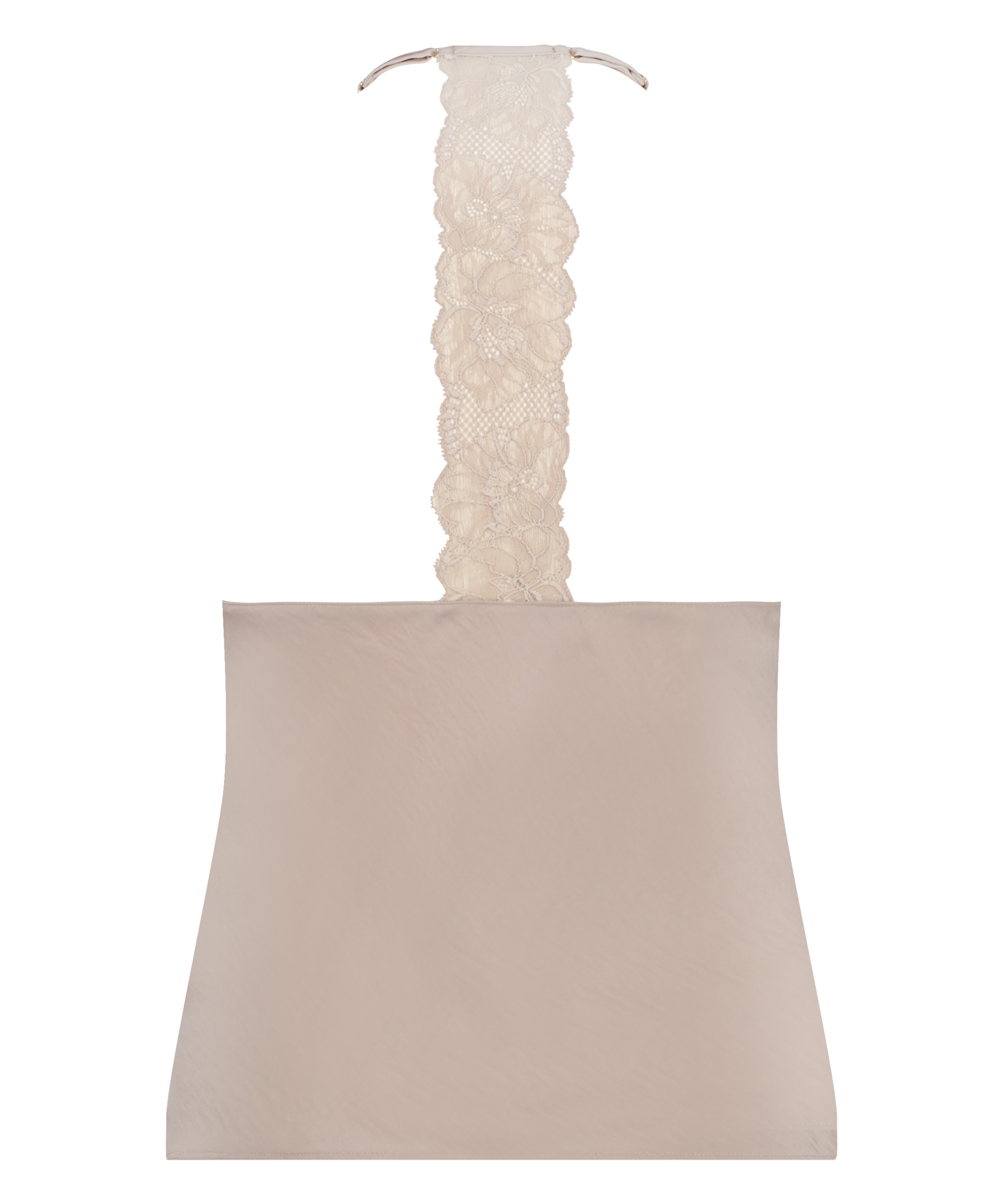 Nos encanta este elegante top de tirantes con escote de encaje que realza sutilmente el pecho. Clásica pero femenina, te encantará esta bonita camisola en satén suave al tacto. ¡Combínala con los artículos a juego para completar tu look!