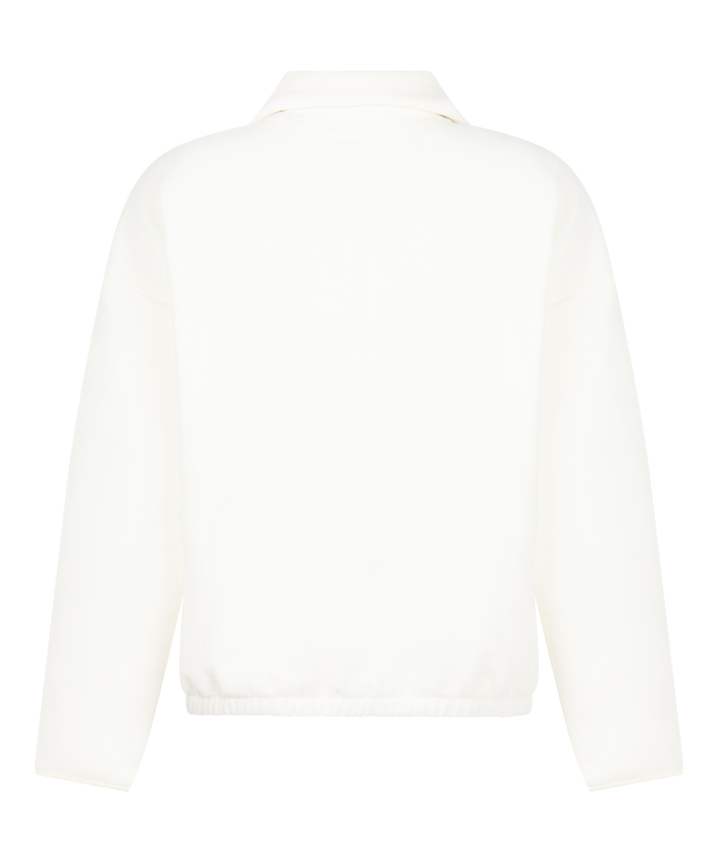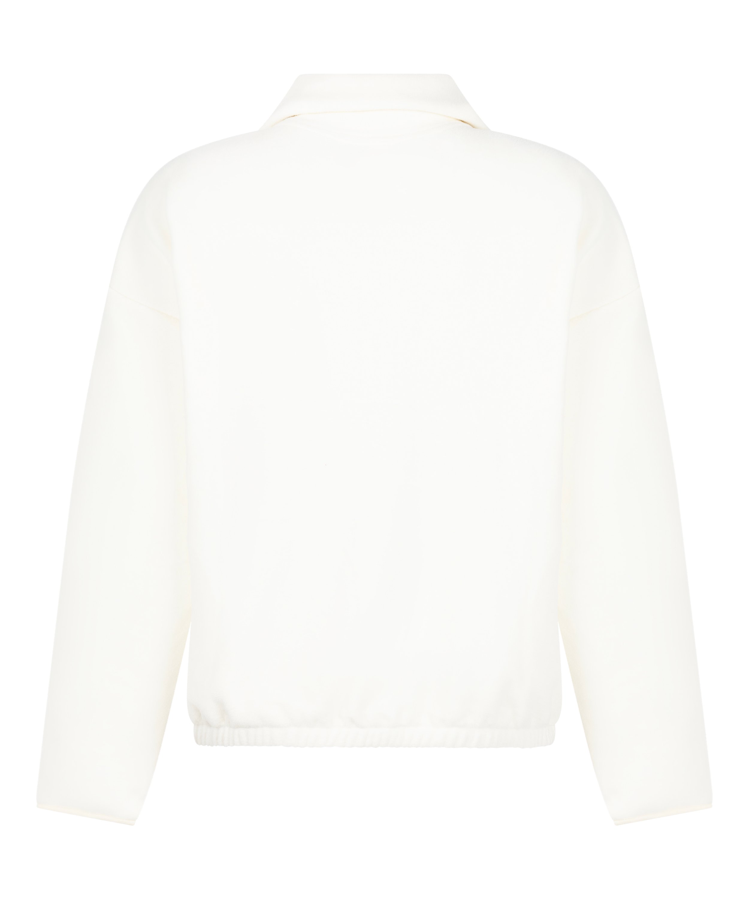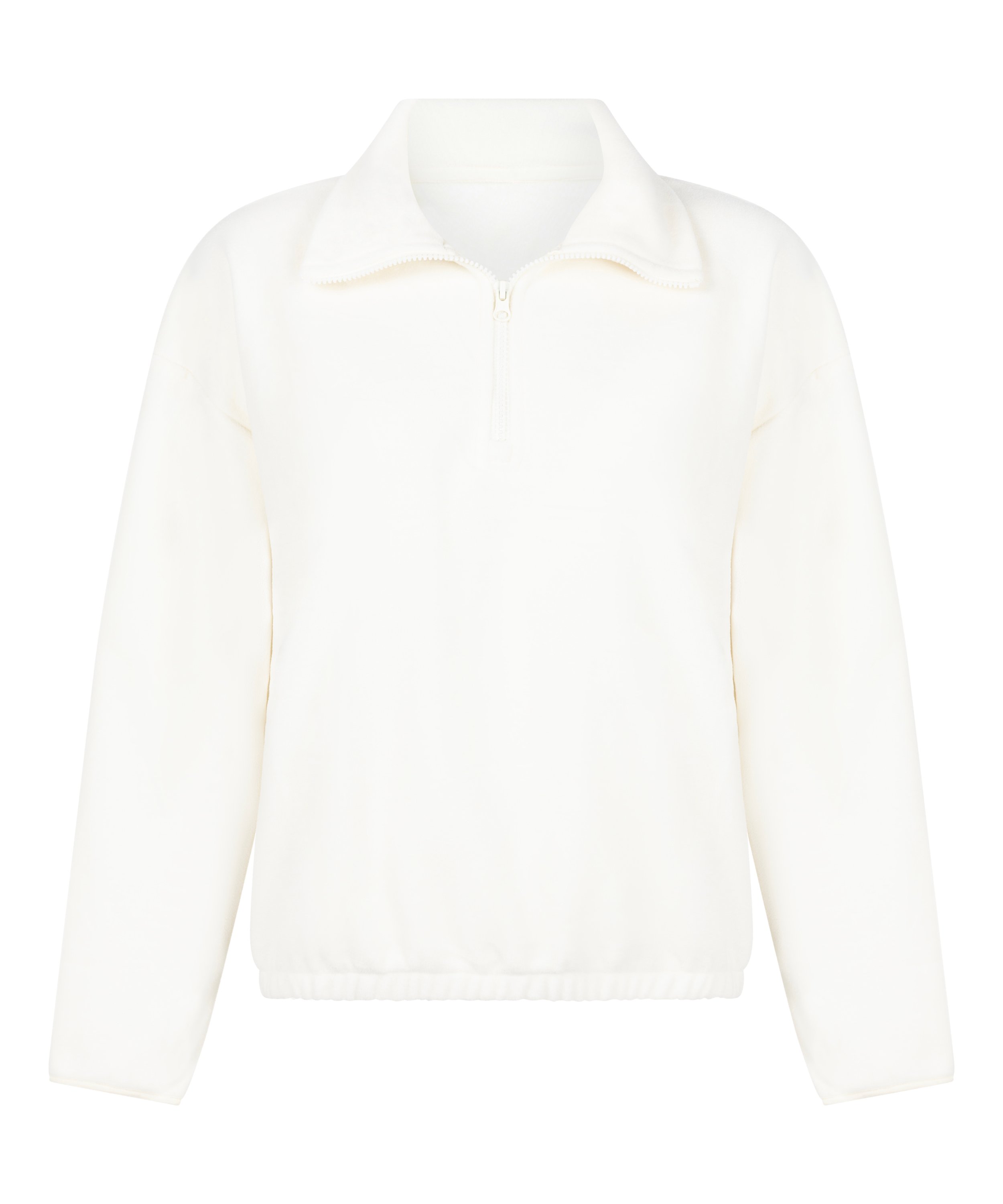 Mantente caliente y elegante con este jersey, tu compañero perfecto para los días más frescos y los momentos más relajados. Confeccionada en suave forro polar, esta parte de arriba de manga larga ofrece un confort afelpado y un calor suave, mientras que el cierre de media cremallera añade un toque deportivo. Diseñada con un corte relajado y una silueta clásica, es ideal para llevarla por encima de la ropa de estar por casa o combinarla con el pantalón de chándal a juego.