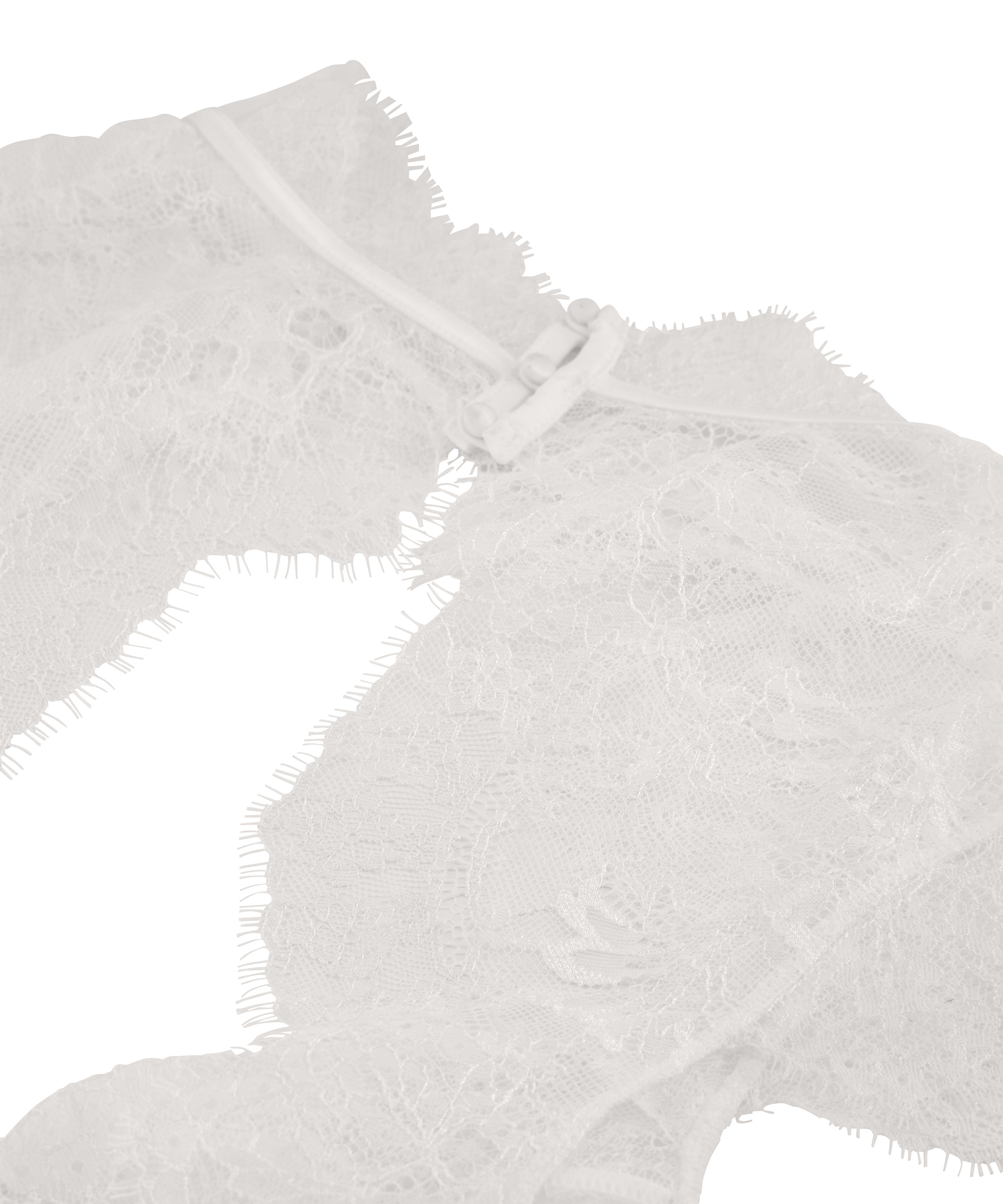 Channel a la diosa que llevas dentro con este exquisito top. Está confeccionado con un delicado encaje floral e incorpora refuerzos en la parte delantera y trasera para esculpir la silueta. Sus copas no acolchadas de doble capa tienen un acabado semitransparente, mientras que los aros garantizan una sujeción óptima. Para mayor comodidad, el sujetador puede fijarse con cinco ganchos. Acabado con un cuello de tortuga adornado con encaje y mangas cortas con cierre de botones, desprende elegancia desde todos los ángulos. Forma parte de nuestra colección Noir. Se puede combinar combinar con nuestra braguita Camille de encaje francés para completar el look y conseguir un conjunto realmente cautivador.