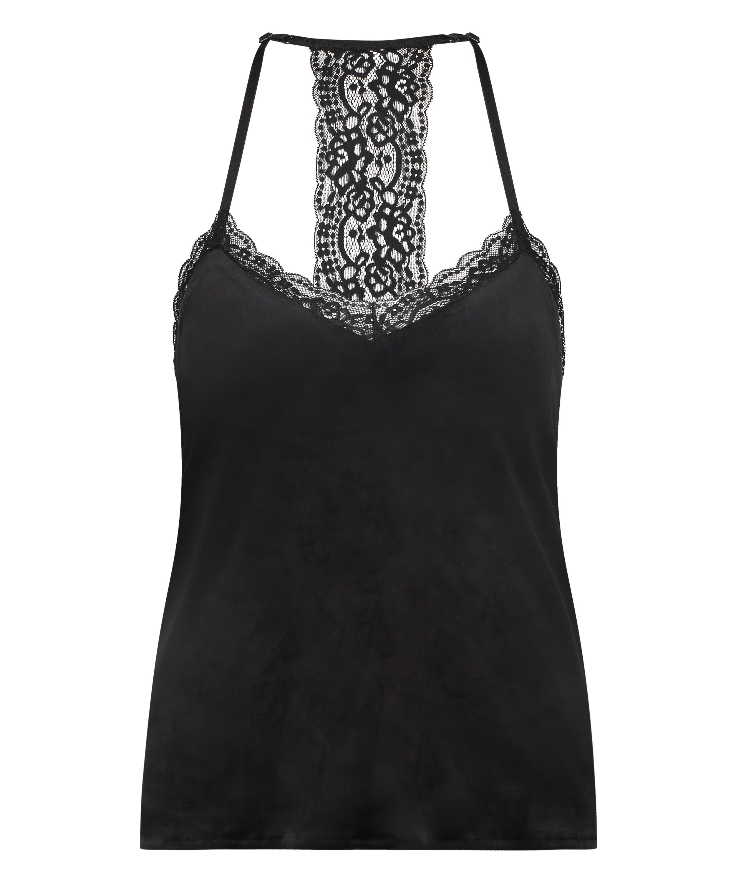 ¡Consigue un aspecto súper sexi y femenino con este top! Está hecho de un tejido de terciopelo y tiene sugerentes detalles de encaje. Combínalo con los artículos a juego.