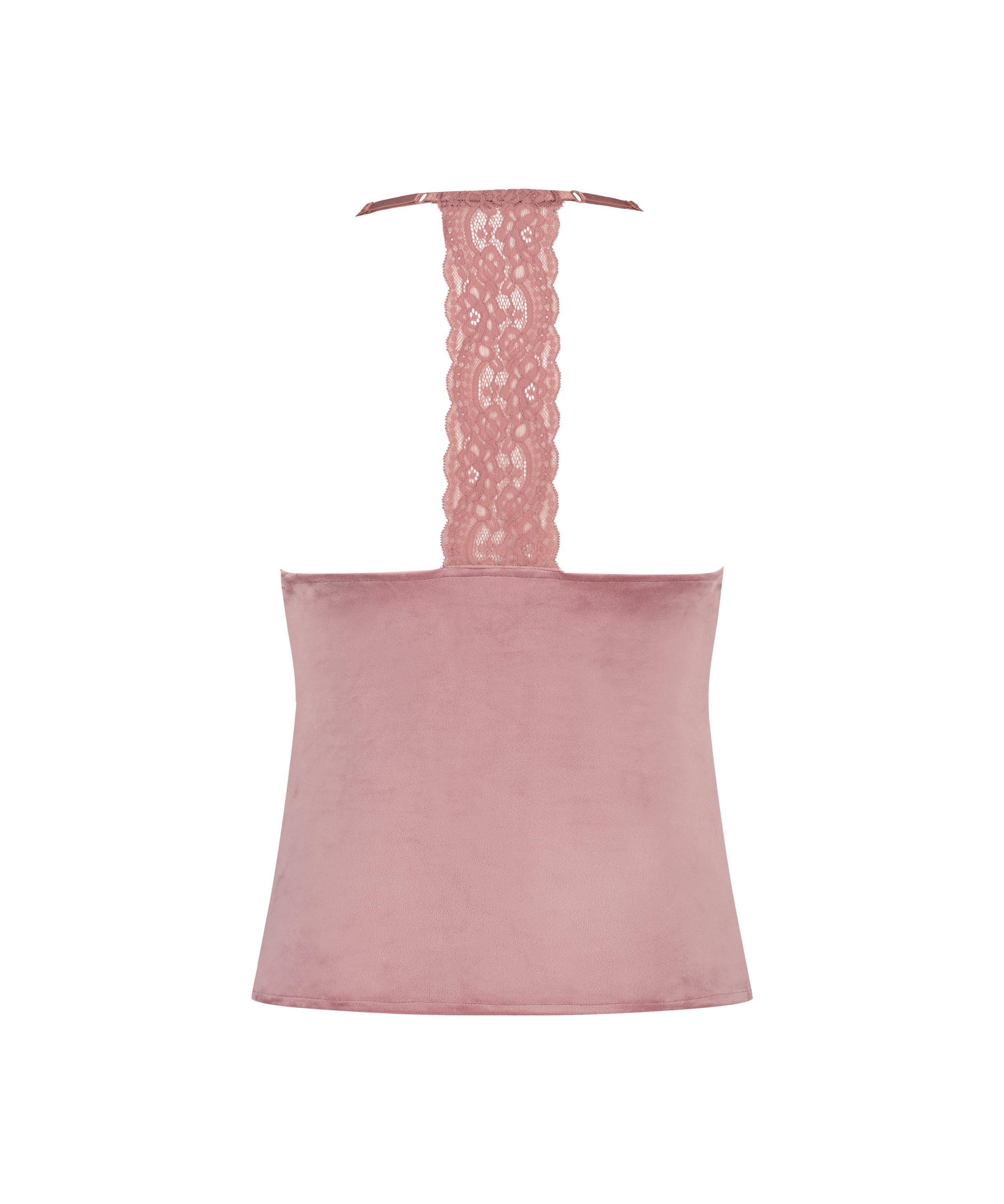 ¡Consigue un aspecto súper sexi y femenino con este top! Está hecho de un tejido de terciopelo y tiene sugerentes detalles de encaje. Combínalo con los artículos a juego.