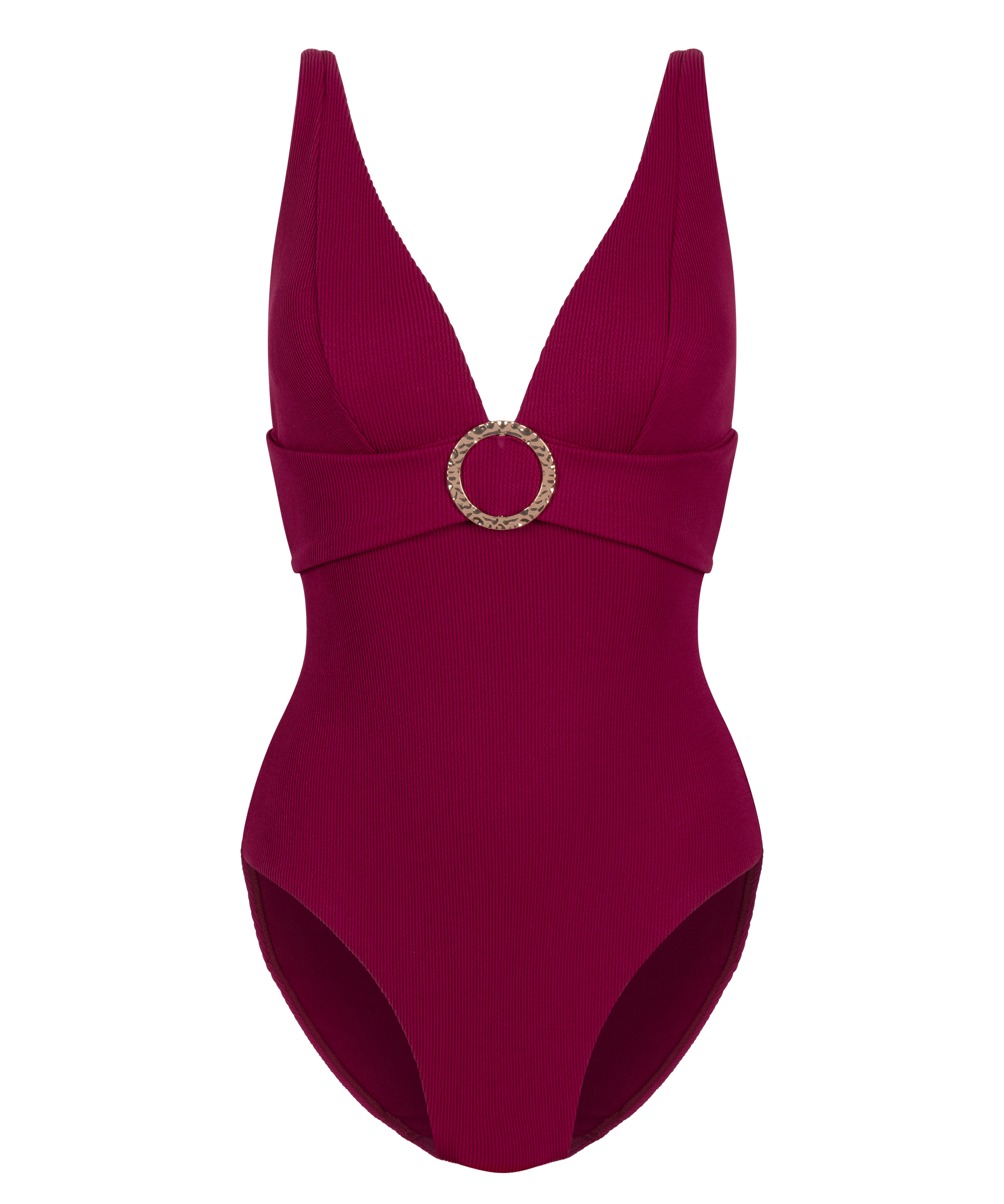 Haz una declaración de estilo con este traje de baño. Los detalles dorados de las anillas son una versión moderna de un clásico atemporal. Este bañador de una pieza acentúa sutilmente tus curvas. Se puede combinar con tu ropa de baño preferida para un look completo. Nuestros trajes de baño moldeadores están diseñados para modelar y realzar el cuerpo, ofreciendo un ajuste firme y cómodo. Te recomendamos elegir una talla más para un ajuste más relajado.