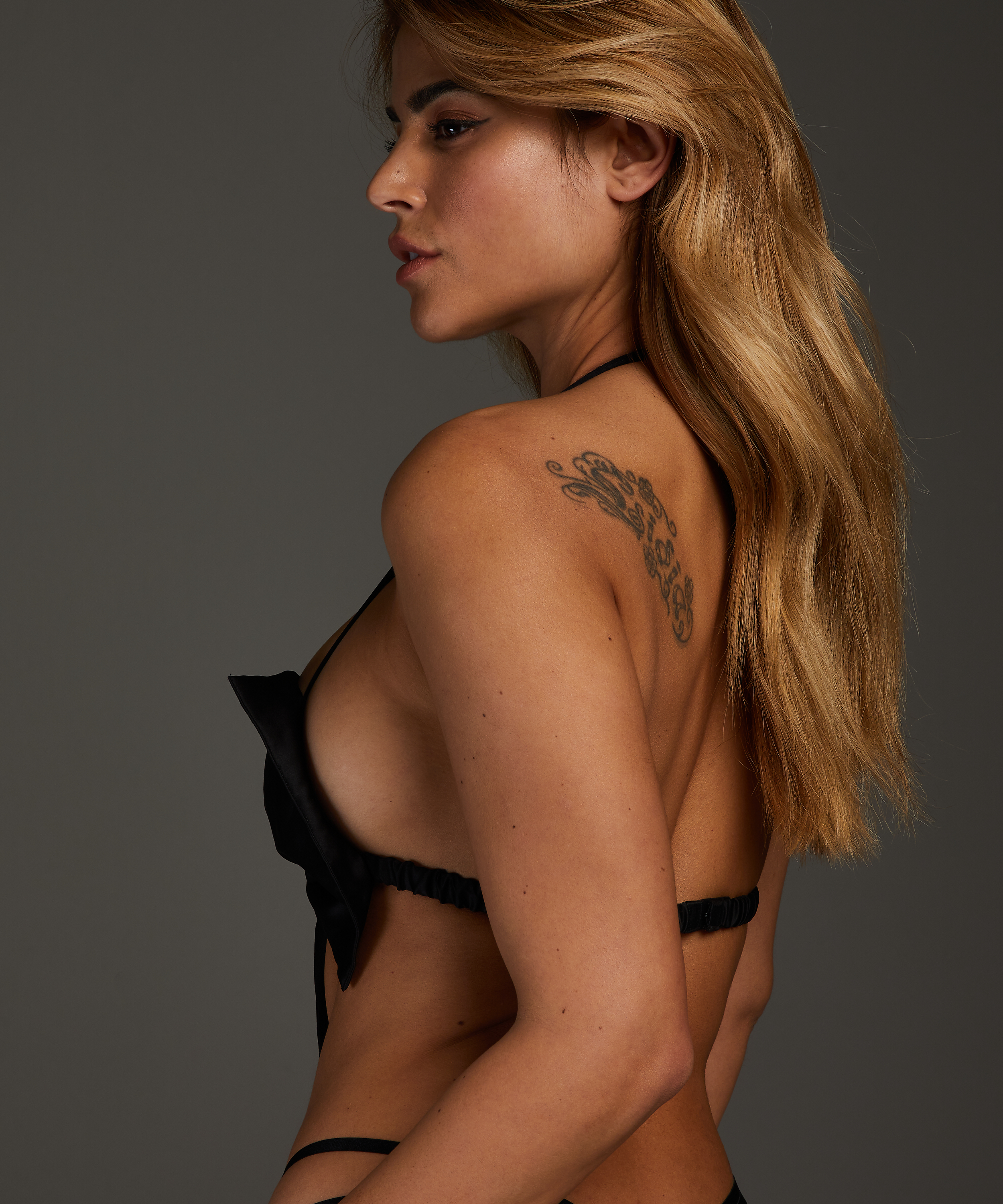 Sé un regalo navideño para tu pareja con este unwrap me bow. En la parte trasera dispone de un cierre y las tiras en el cuello deben anudarse. Forma parte de la fascinante colección Private.
