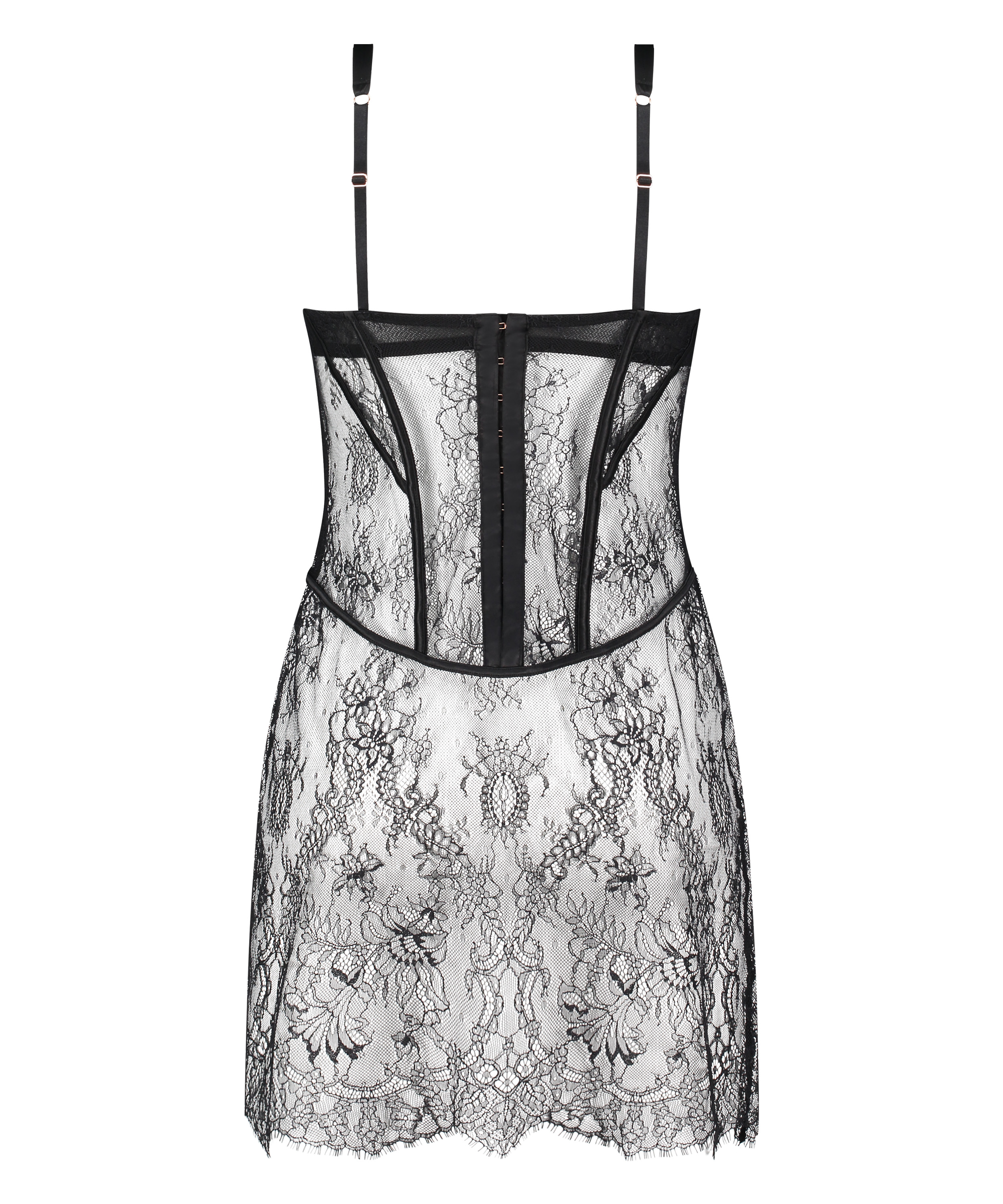Si quieres sentirte sexy con un vestido combinación, ¡éste es perfecto! Este vestido combinación te cubrirá por completo con un delicado encaje floral y dará la ilusión de una silueta esculpida gracias al bonito diseño con varillas de la parte delantera y la espalda. Las copas sin relleno, de doble capa y acabadas en encaje, crean un efecto parcialmente transparente y seductor, mientras que los aros proporcionan una sujeción ideal. Para mayor comodidad, el sujetador cuenta con nueve cierres de gancho para una sujeción segura en la espalda, complementados con tirantes ajustables de satén que permiten un ajuste personalizado. Este vestido forma parte de nuestra colección Noir y se puede combinar con un tanga a juego.